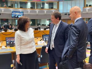 În data de 15 mai a.c., la Bruxelles, s-a desfășurat reuniunea Consiliului Afaceri Externe – Comerț (CAE Comerț), la care au participat miniștrii responsabili de portofoliile comerțului internațional din statele membre ale Uniunii Europene (SM UE), precum și Comisarul pentru Comerț și securitate economică, relații interinstituționale și transparență, Maroš Šefčovič. Agenda reuniunii a inclus o sesiune de dezbateri privind evoluțiile în relațiile comerciale dintre Uniunea Europeană și Statele Unite ale Americii, precum și un schimb de opinii axat pe consolidarea securității economice europene. De asemenea, în cadrul prânzului de lucru, au fost abordate negocierile comerciale aflate în curs de desfășurare cu parteneri strategici precum India, statele din Golf și țările din Asia de Sud-Est.