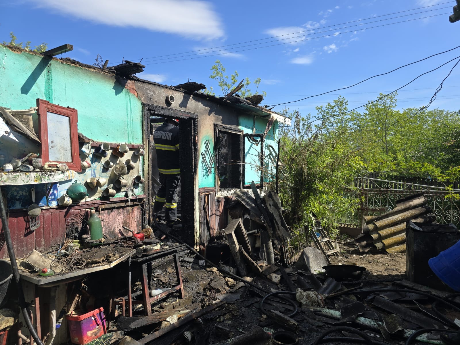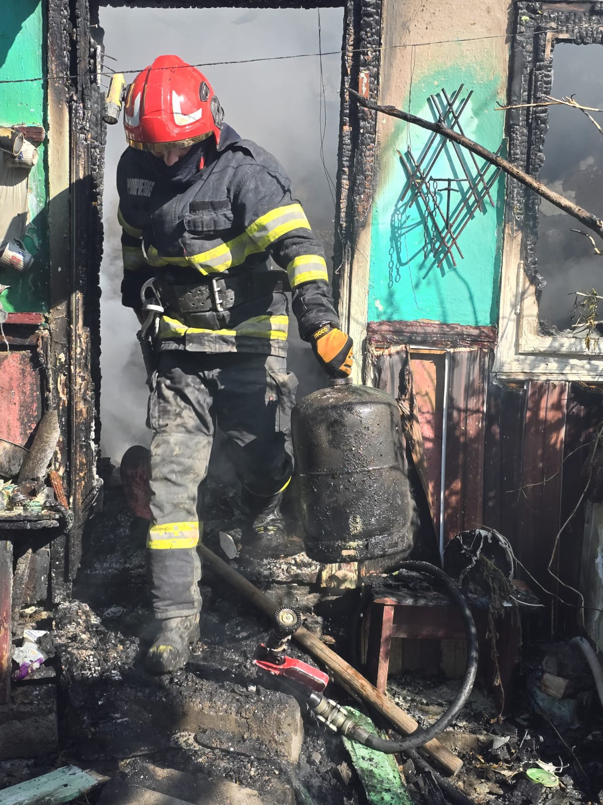 Pompierii au înlăturat și pericolul de explozie, din interiorul anexei fiind scoasă o butelie.