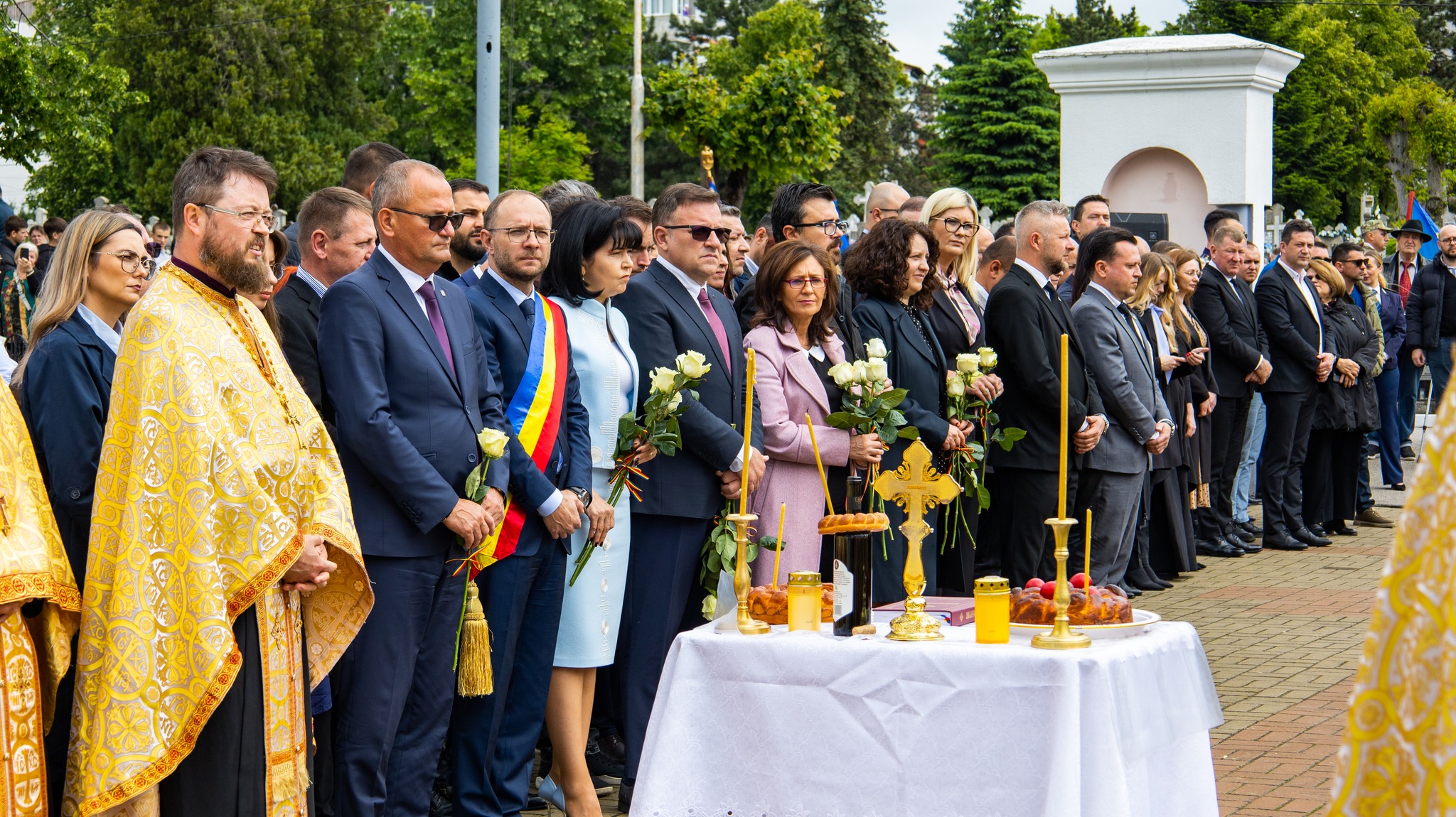 Clopotele tuturor lăcașelor de cult din oraș au răsunat în același timp iar un sobor de preoți, în frunte cu Protopopul Petru Fercal, a săvârșit un scurt moment religios!