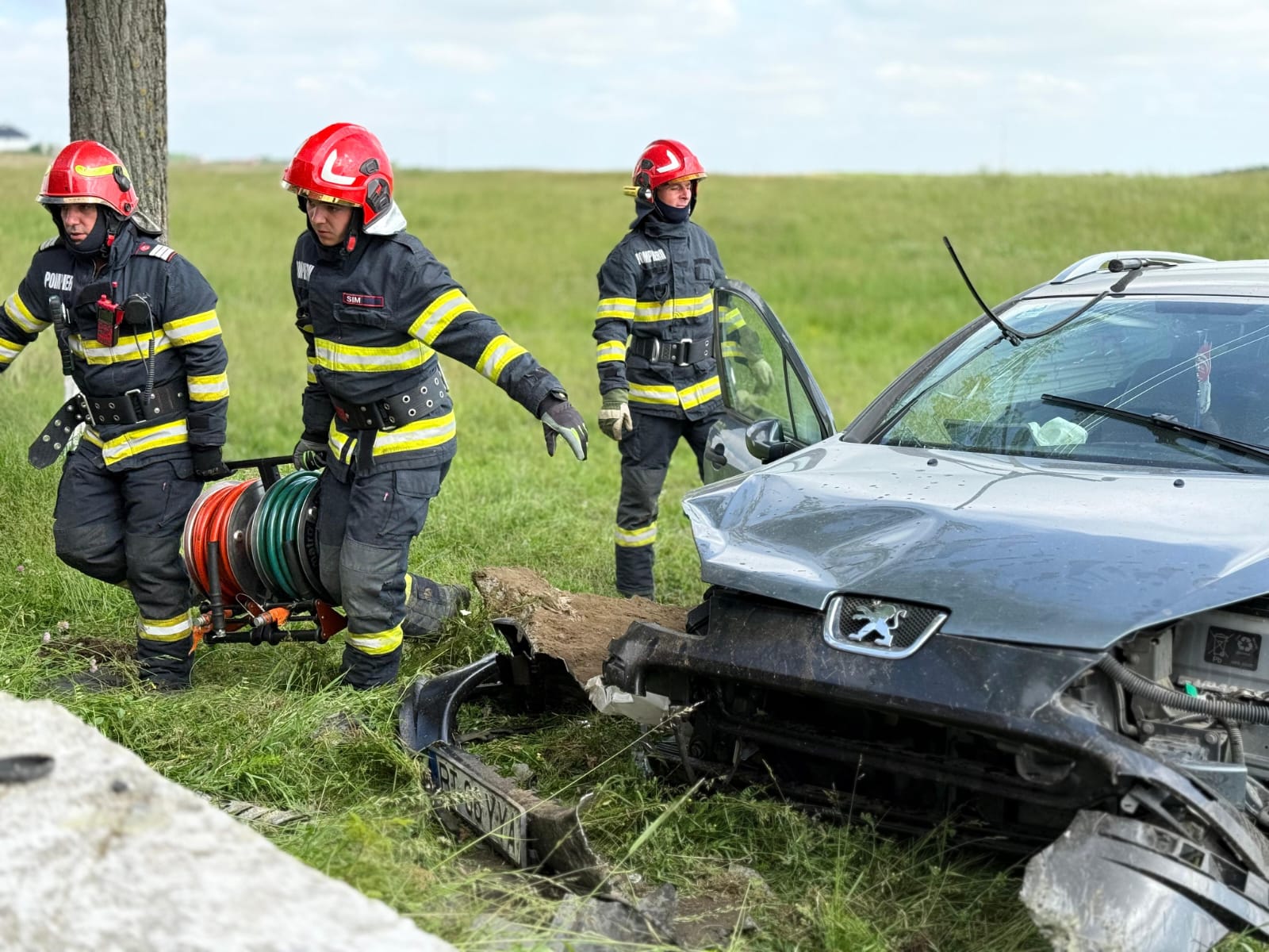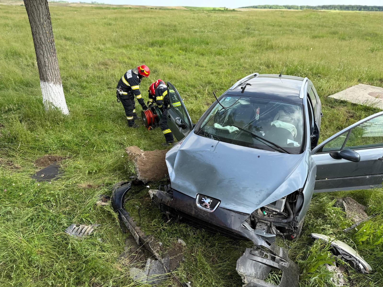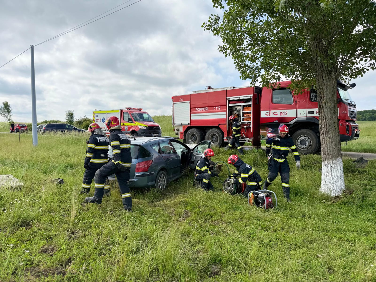 Aceștia au constatat faptul că mașina era în afara părții carosabile, iar pasagerul din dreapta șoferului era în interior. Bărbatul, în vârstă de 74 de ani, a fost scos din autoturism de către pompieri, fiind preluat de echipajul medical, care