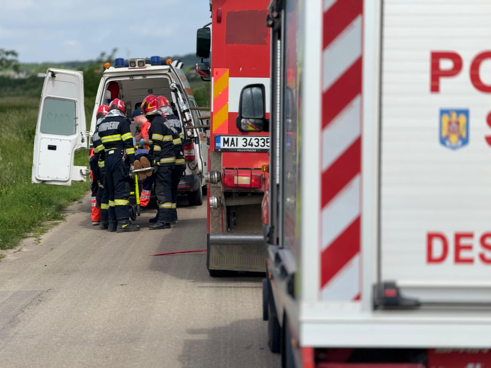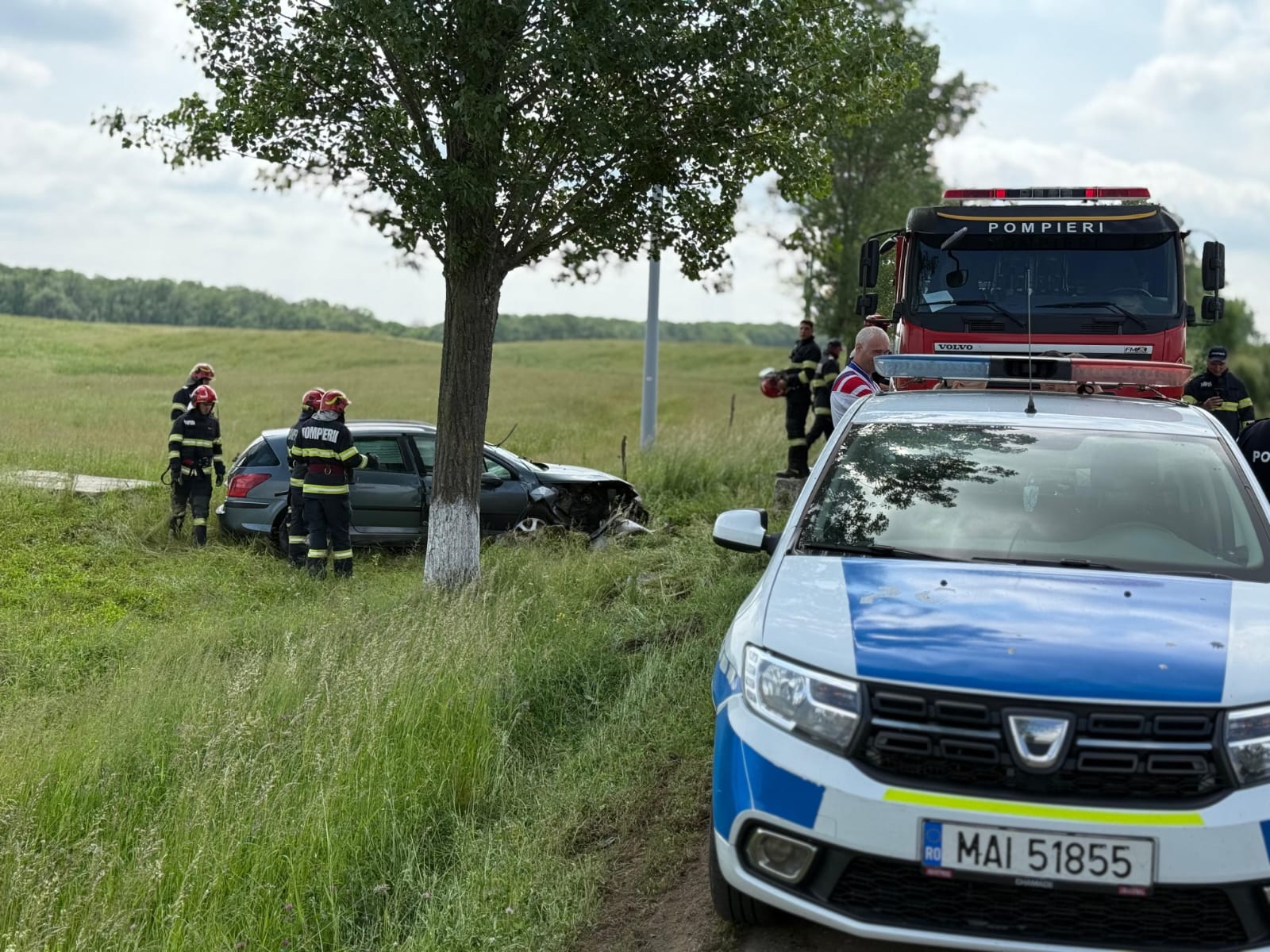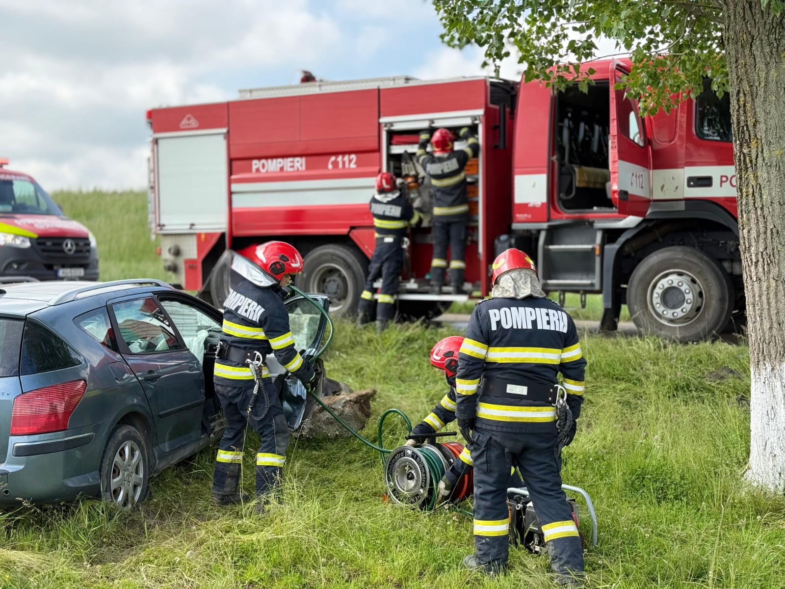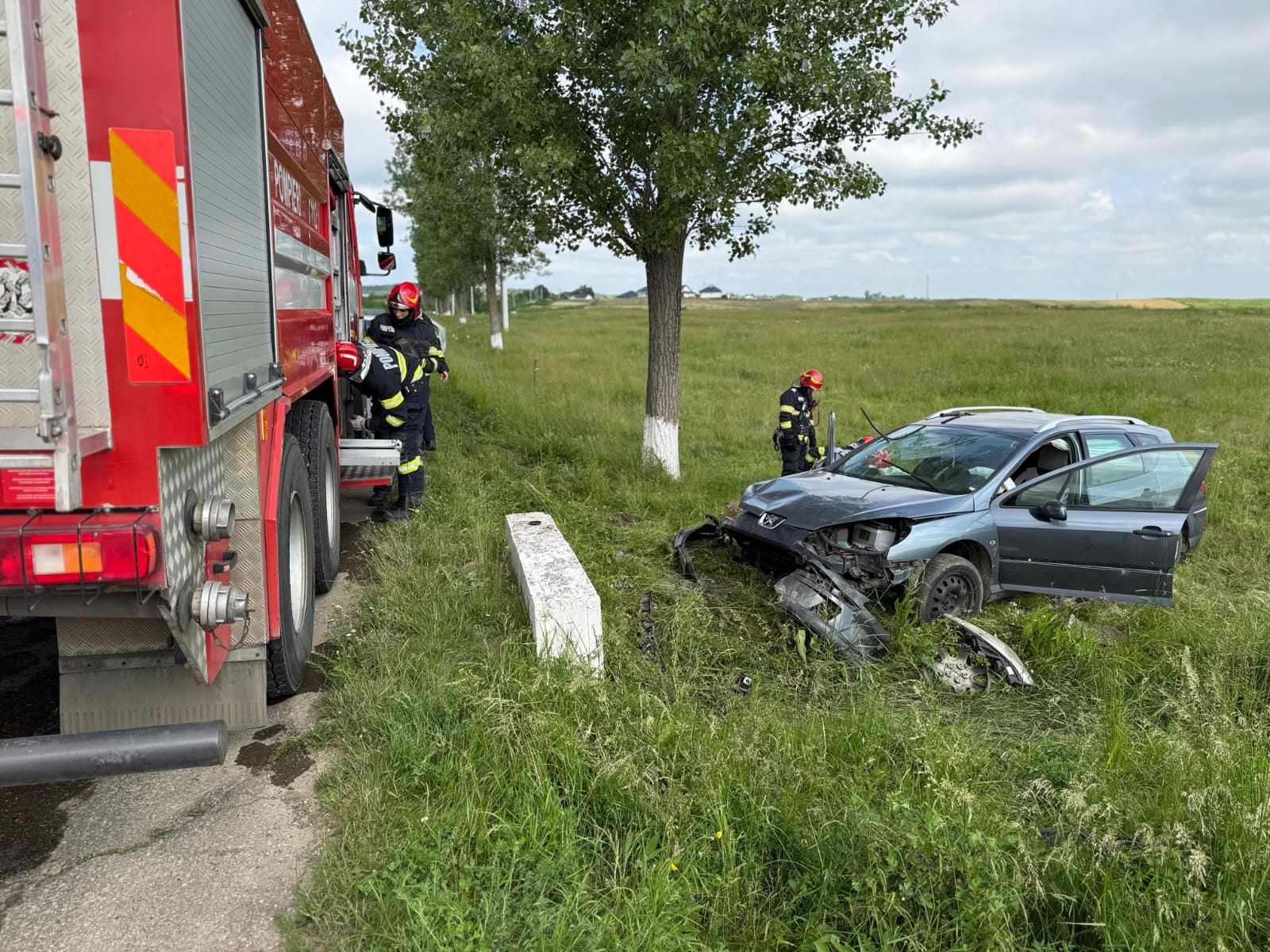 Aceștia au constatat faptul că mașina era în afara părții carosabile, iar pasagerul din dreapta șoferului era în interior. Bărbatul, în vârstă de 74 de ani, a fost scos din autoturism de către pompieri, fiind preluat de echipajul medical, care