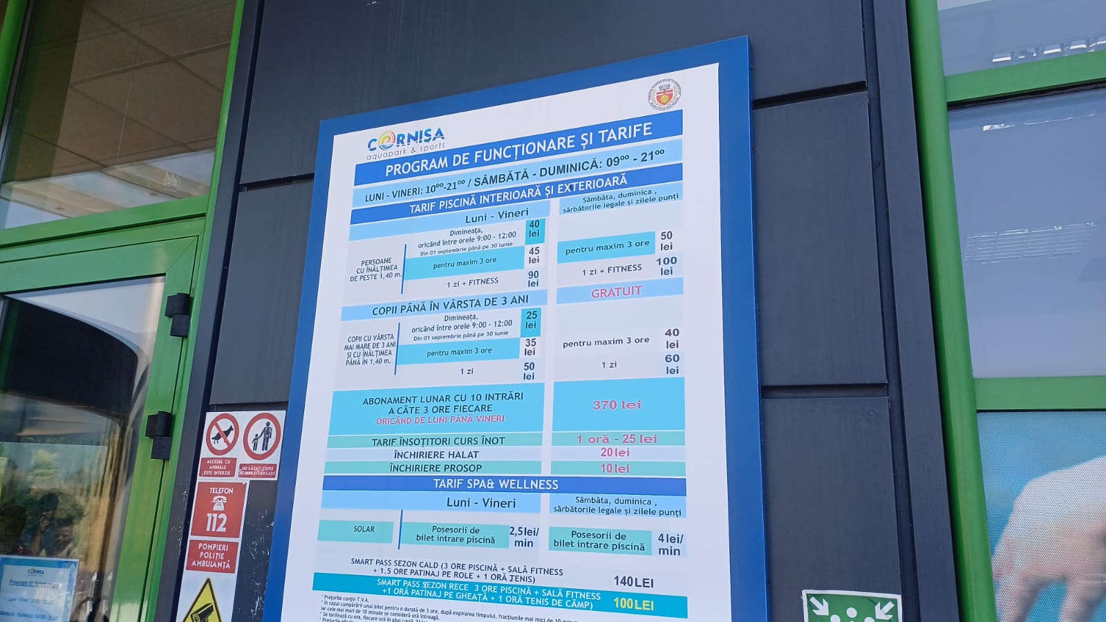 Prețul de acces la piscină variază între 40 și 100 de lei, în funcție de durata șederii, intervalul orar sau de ziua în care clientul dorește să facă baie.