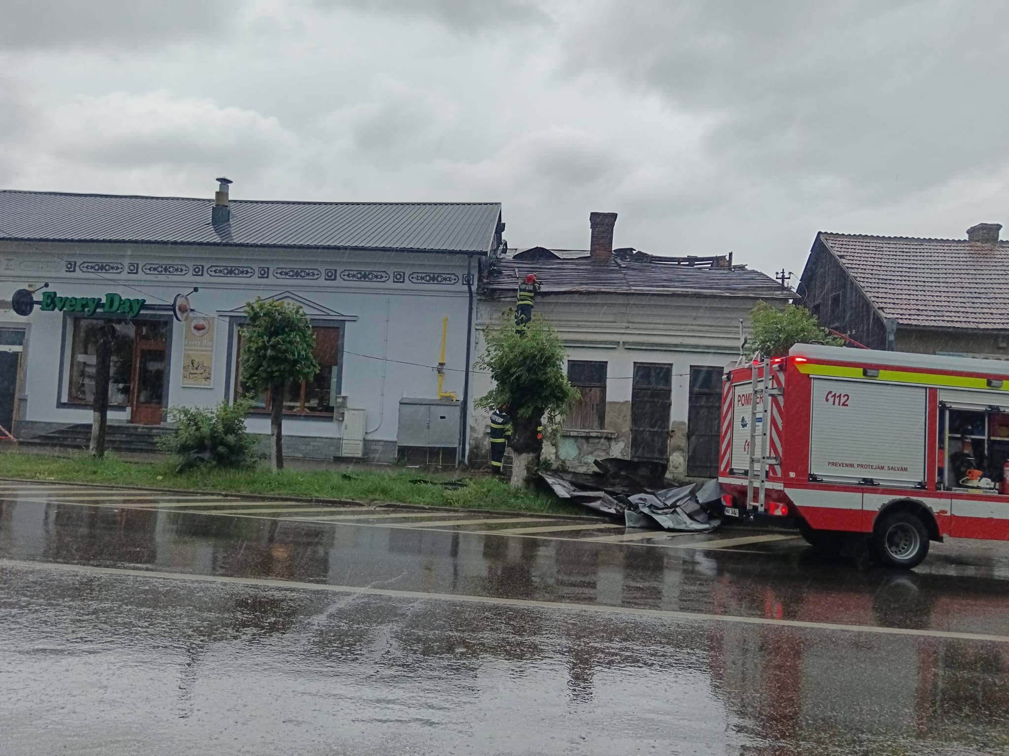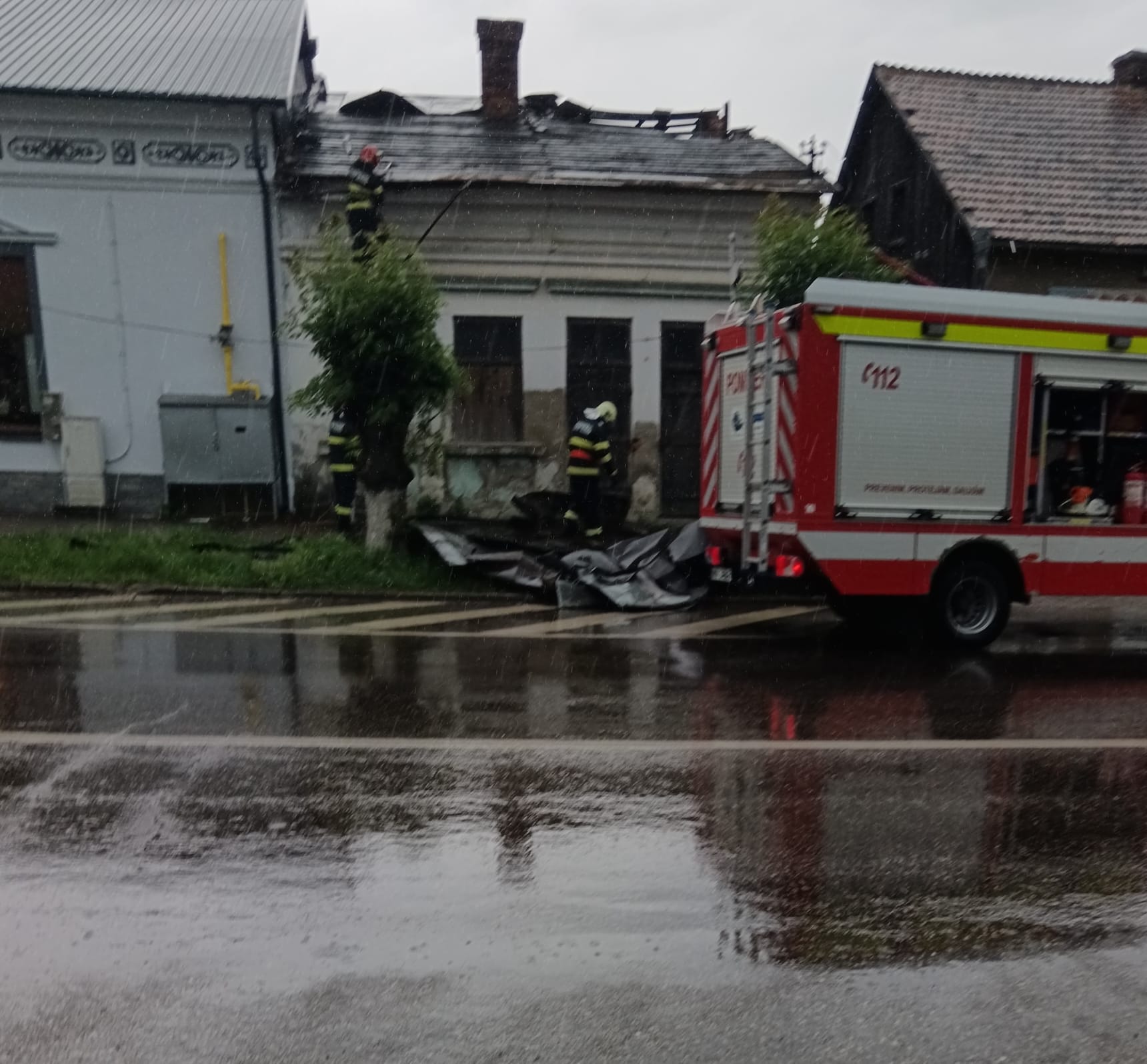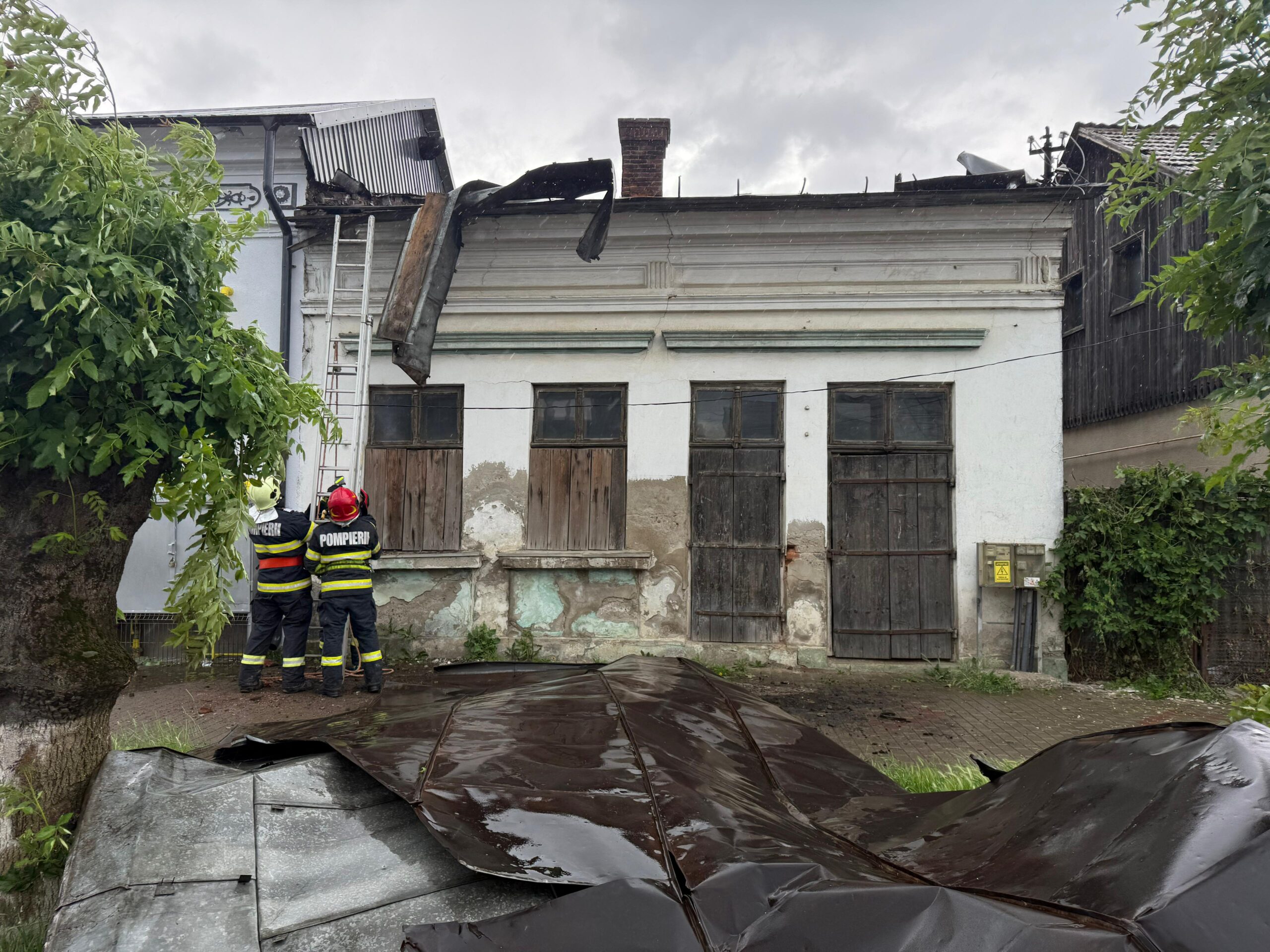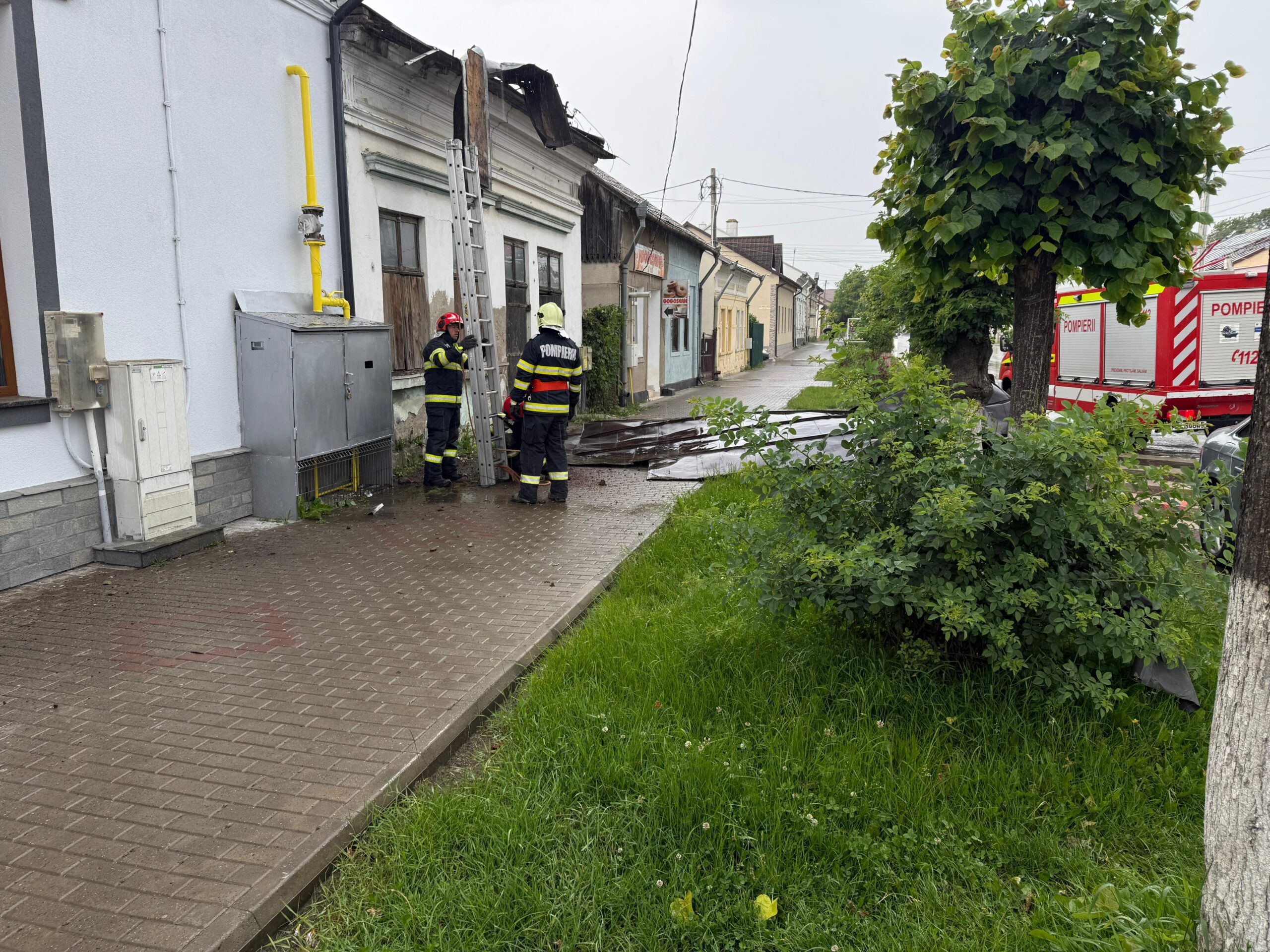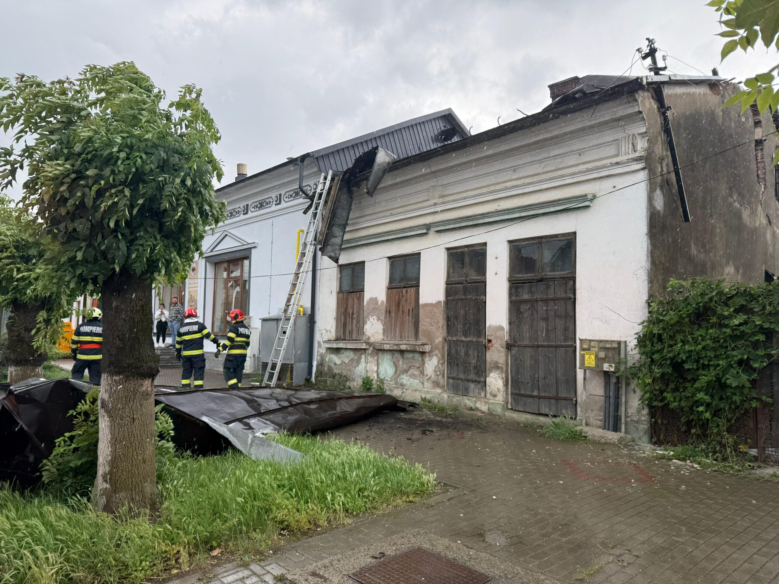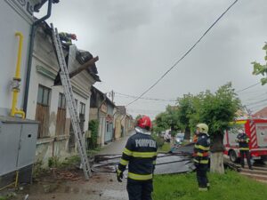 Pompierii militari intervin pentru îndepărtarea elementelor de construcție afectate de vânt și pentru consolidarea celor instabile.