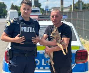 Intervenție pentru salvarea unui pui de căprioară rănit, în comuna Trușești. Polițiștii din cadrul Postului de Poliție Transporturi Feroviare Trușești au fost sesizați, sâmbătă, cu privire la prezența unui pui de căprioară rănit, aflat într-un lan de lucernă din apropierea Pădurii Drislea, pe raza comunei Trușești, județul Botoșani.