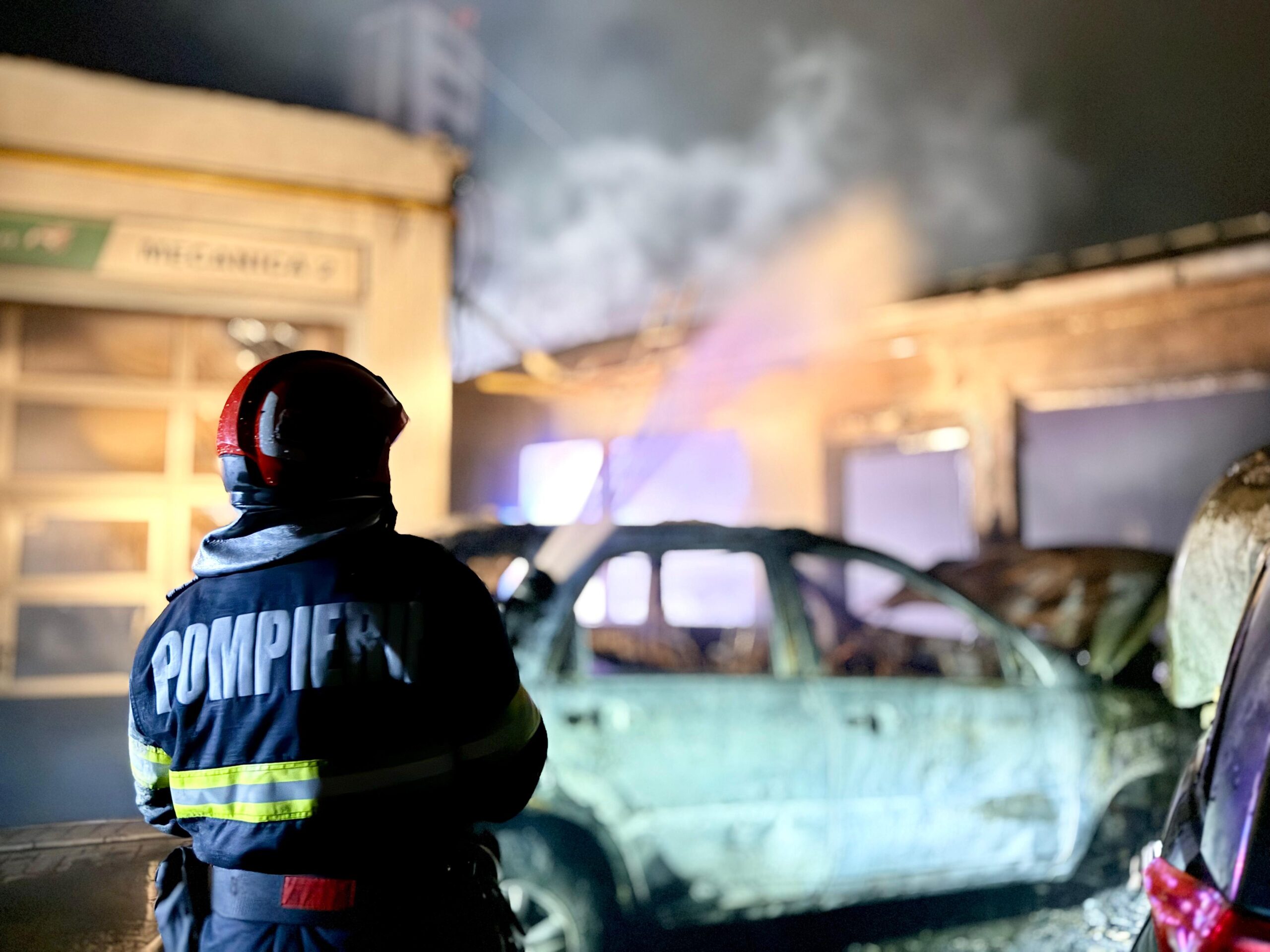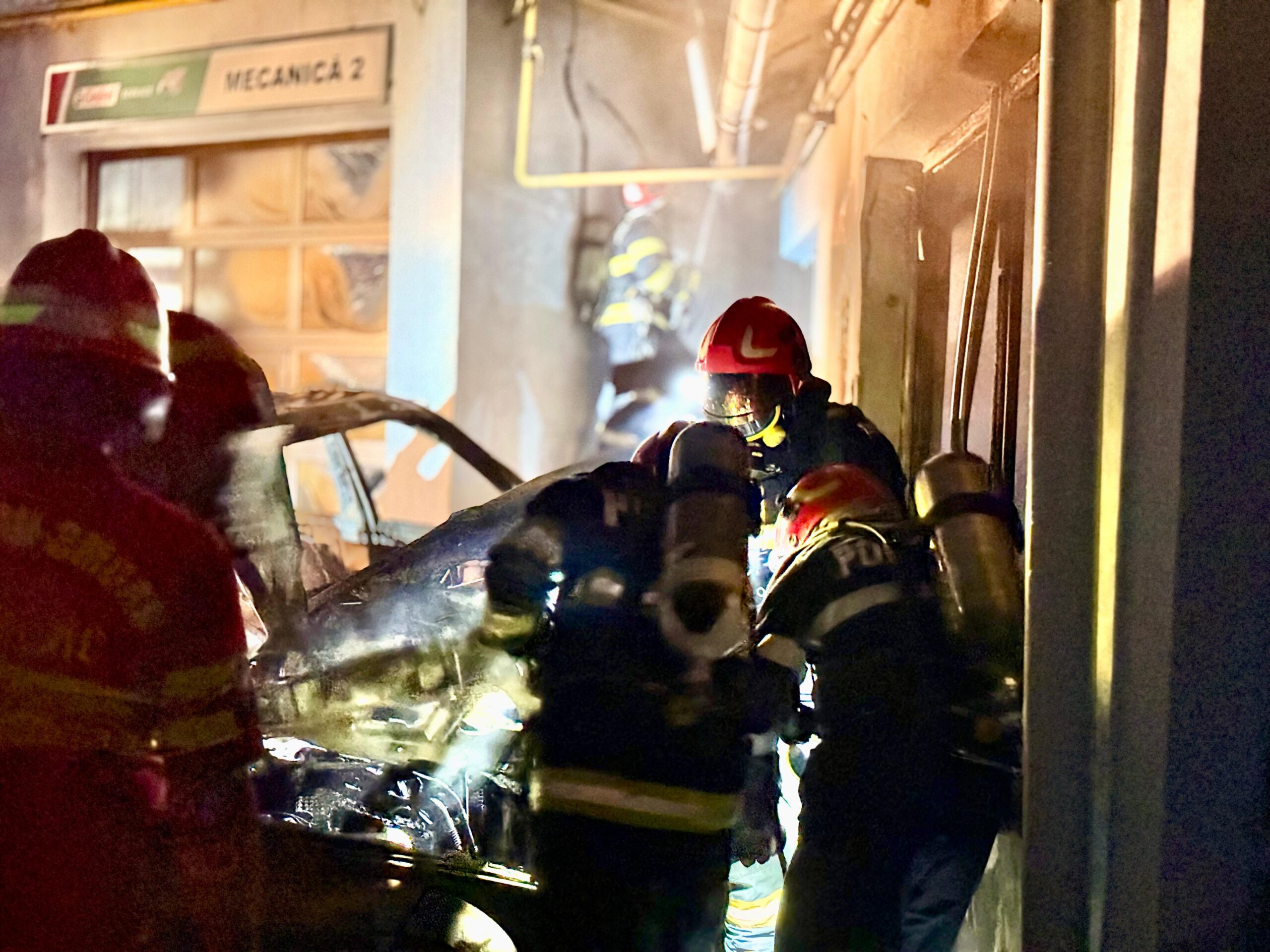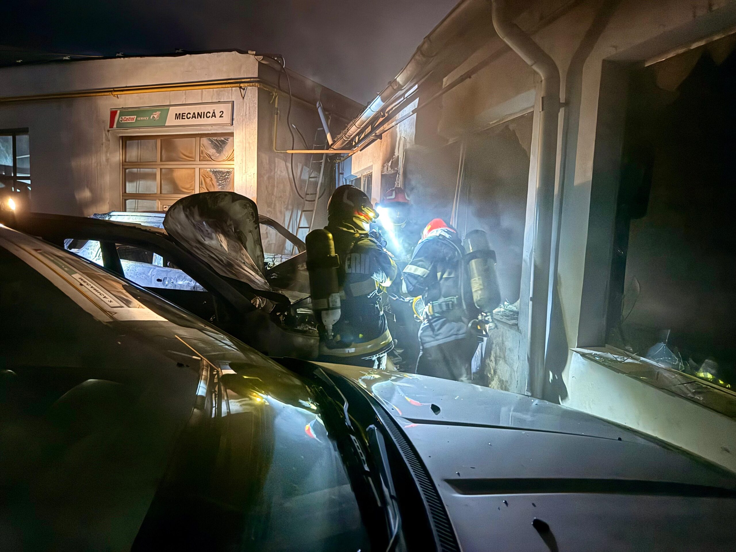 Aceștia au constatat faptul că ardeau două autoturisme, cu flacără și dejări mari de fum, dar și o parte din geamurile și ușile service-ului auto. Din cauza căldurii degajare au fost afectate o altă mașină, dar și aproximativ 70 de metri pătrați din acoperișul service-ului auto.