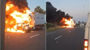 ”Pe DN 2 Urziceni-Buzău, în zona localităţii Cotorca, judeţul Ialomiţa, a avut loc o coliziune între un autocamion şi un autoturism, în urma căreia a izbucnit un incendiu la nivelul ambelor autovehicule. Incendiul a fost lichidat”, a anunţat Centrul Infotrafic din IGPR.