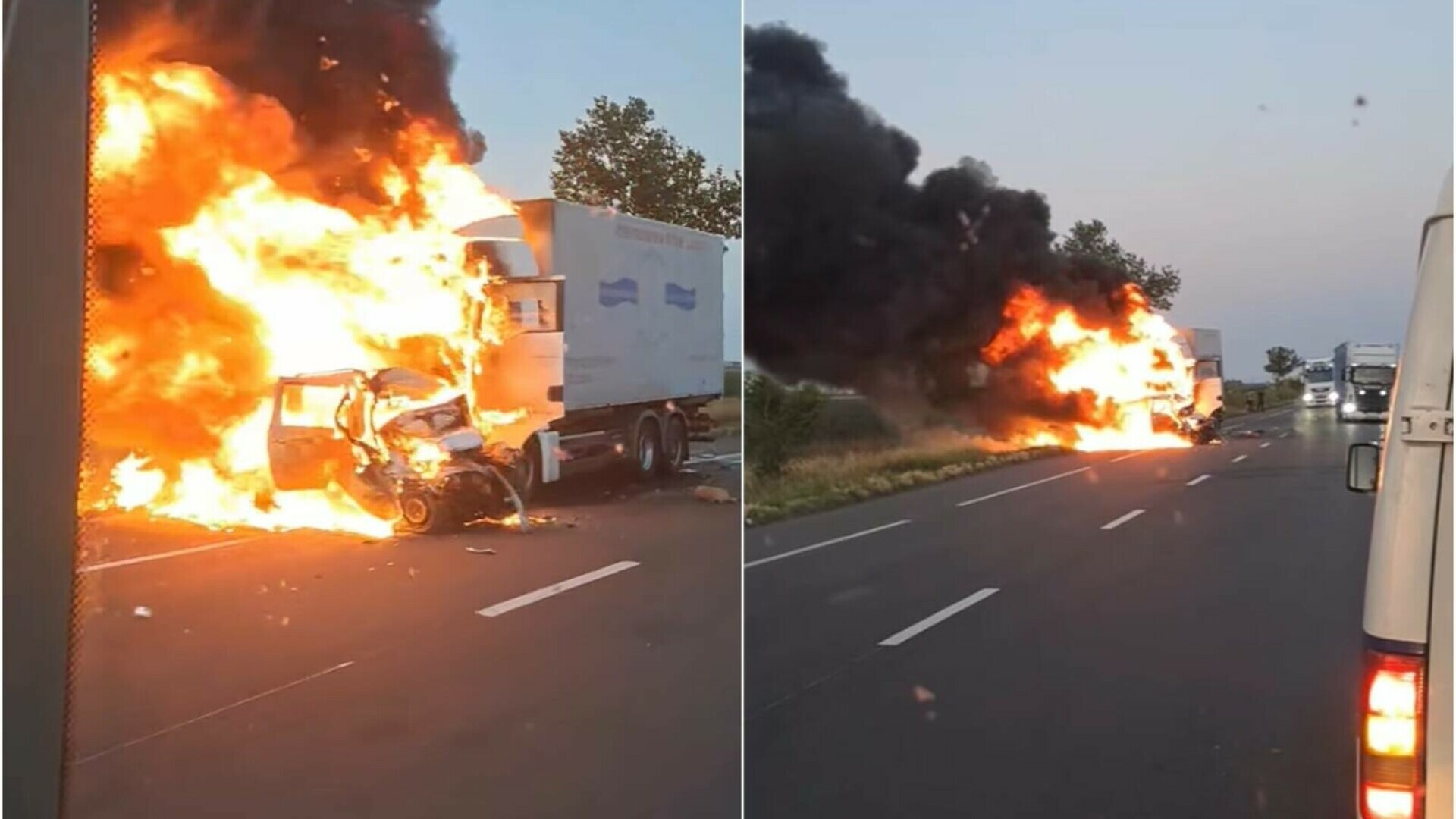 Un bărbat a murit carbonizat, iar şoferul camionului a fost rănit, după un accident cu incendiu între un camion şi un autoturism, luni dimineaţă pe DN2, în localitatea Cotorca din judeţul Ialomiţa.