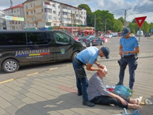 Un bărbat s-a prăbușit pe o stradă din municipiul Botoșani, sâmbătă dimineață. Un echipaj de jandarmerie aflat în executarea misiunii de ordine publică în municipiul Botoșani i-a acordat primul ajutor omului în vârstă de 70 de ani, care a căzut și s-a lovit la cap.