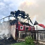 Construcția, majoritară din lemn, a fost afectată pe o suprafață de aproximativ 100 de metri pătrați, cu furaje și alte bunuri depozitate în interior.
