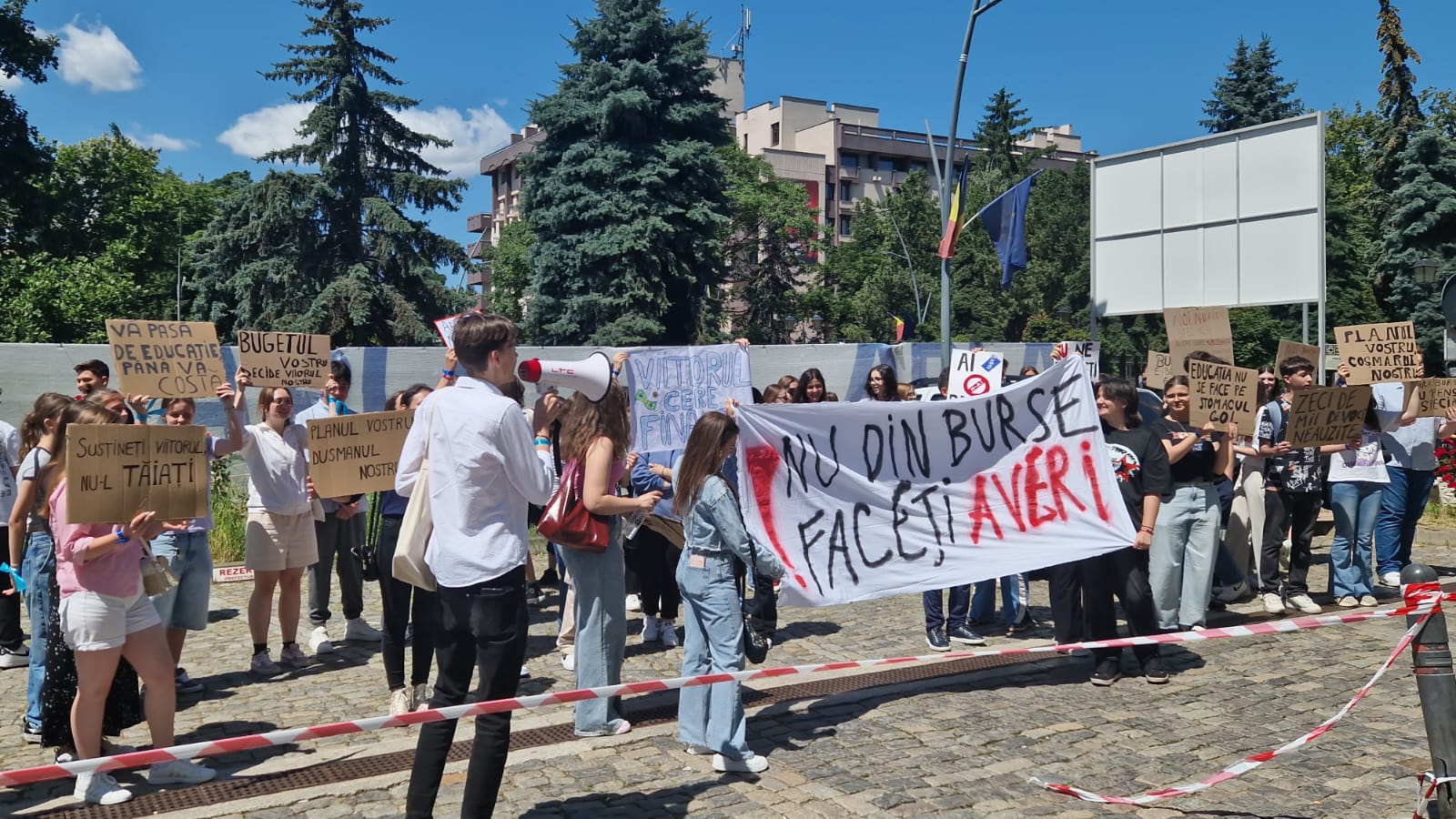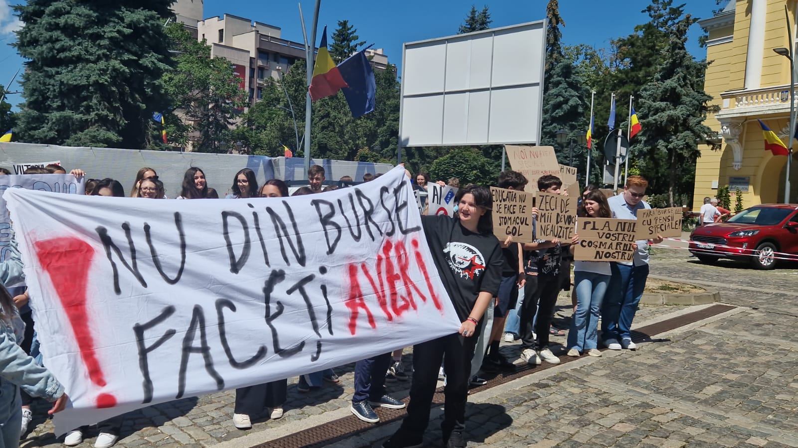 „Nu din burse faceți averi”, „Educația nu se face cu stomacul gol”, „Noi învățăm, voi tăiați”, „Bursa nu e un favor, e un drept, un ajutor”, sunt câteva dintre mesajele elevilor.