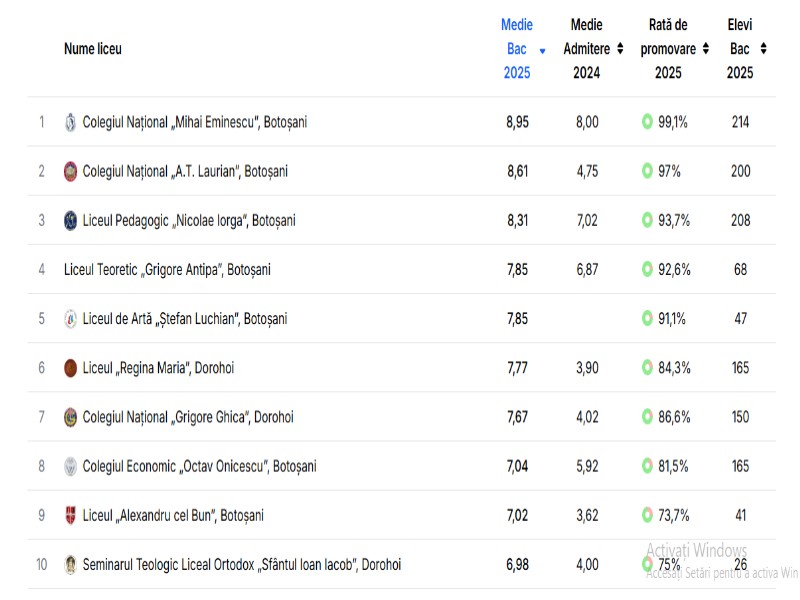 Top 10 cele mai bune licee din Botoșani, după promovabilitatea la Bacalaureat. Clasament schimbat după contestații