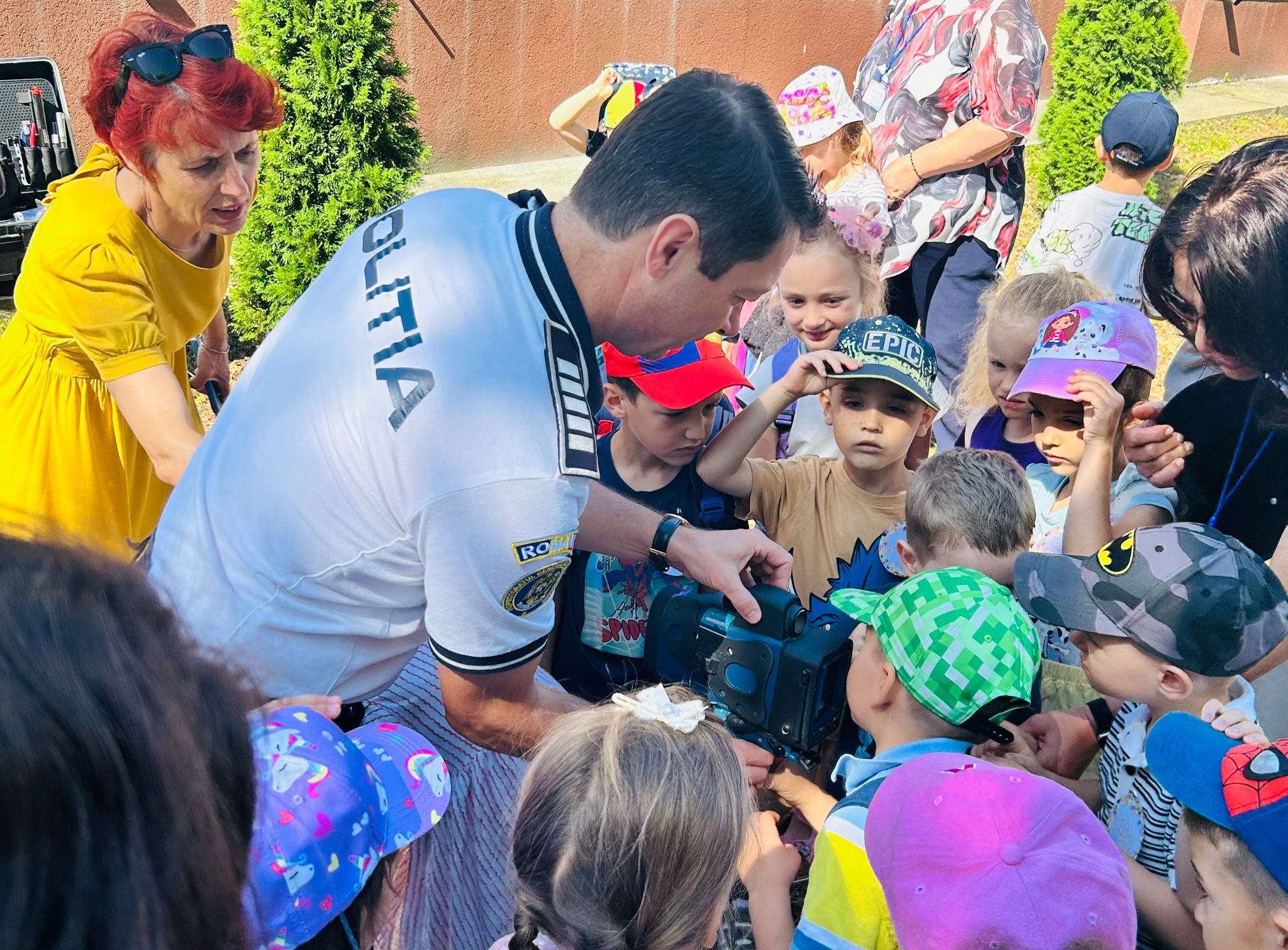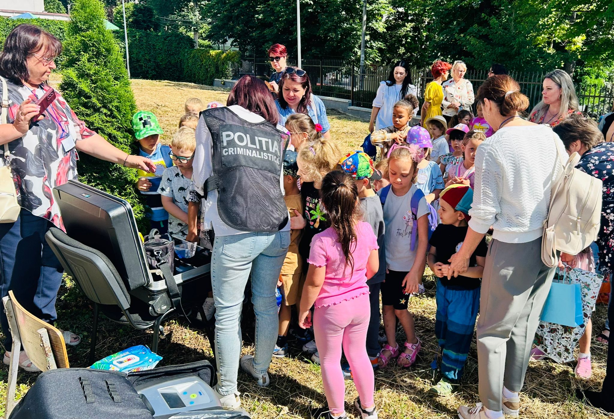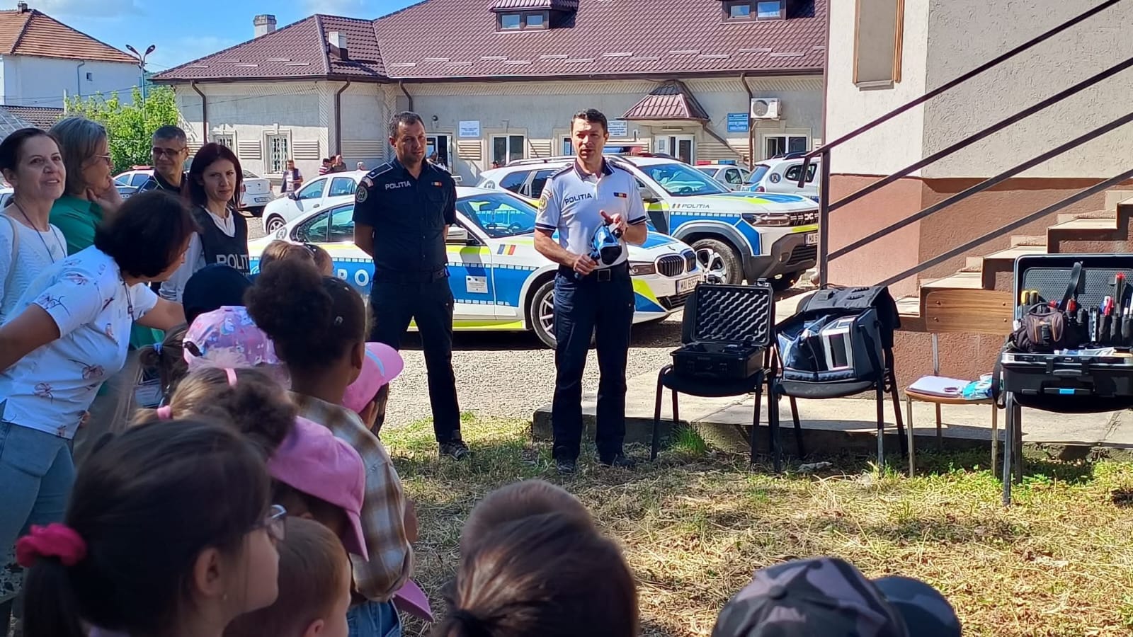 Copiii au avut ocazia să urce în autospecialele de poliție, să descopere echipamentele din dotare și să afle, într-un limbaj adaptat vârstei lor, cum contribuie polițiștii la o comunitate mai sigură.