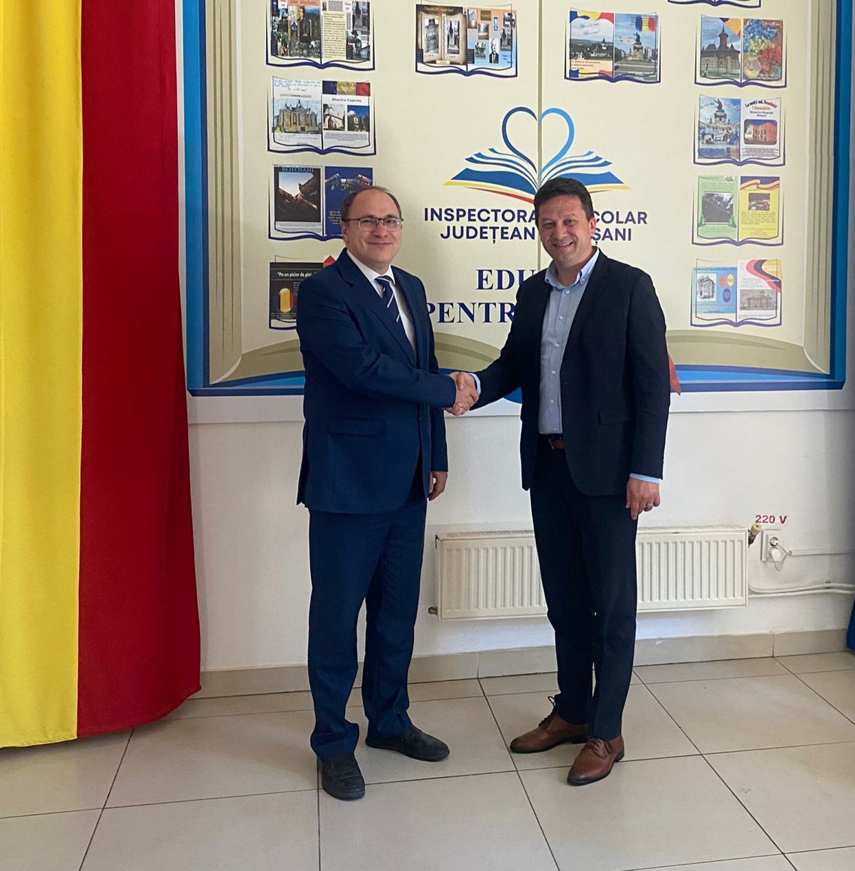 Rectorul Universității „Ștefan cel Mare” din Suceava (USV), prof. univ. dr. Mihai Dimian, a avut o întâlnire de lucru cu prof. Bogdan Suruciuc, Inspector Școlar General al Județului Botoșani, pentru pregătirea extinderii USV la Botoșani. Discuțiile, care au avut loc la sediul ISJ Botoșani, au vizat dezvoltarea învățământului preuniversitar dual din județul Botoșani și identificarea soluțiilor potrivite pentru a oferi primele programe universitare de studiu ale Universităţii „Ștefan cel Mare” la Botoșani, începând cu anul universitar 2026-2027.
