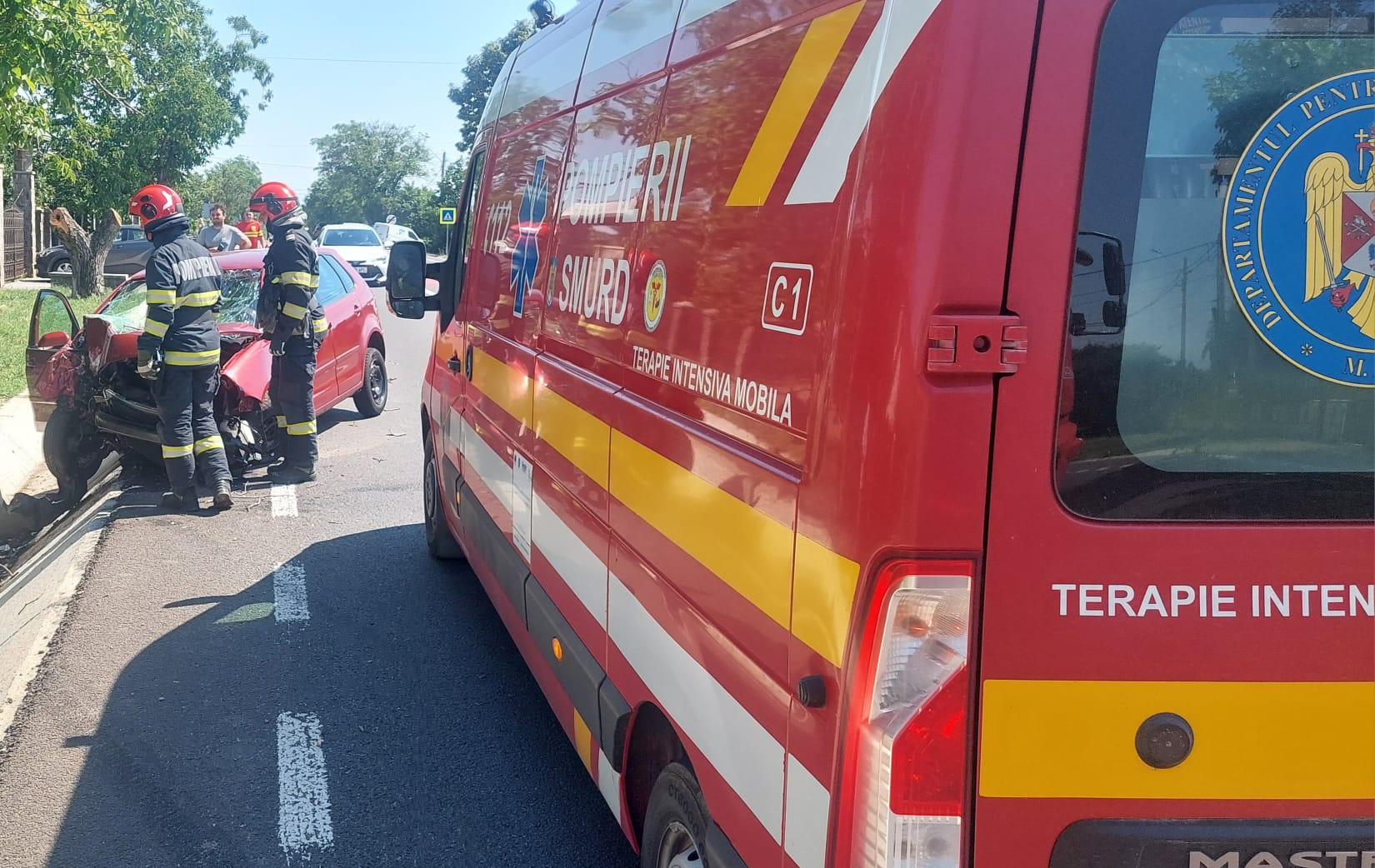 Aceștia au constat faptul că nu erau persoane încarcerate. Conducătoarea auto, în vârstă de 29 de ani, a fost rănită. Aceasta a fost preluată de echipajul medical și transportată la spital pentru îngrijiri de specialitate.