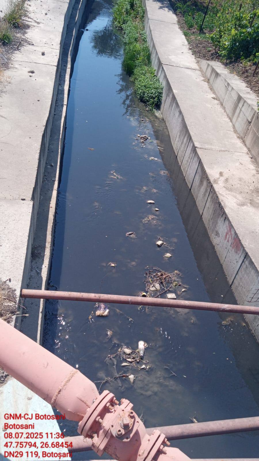 „În urma controlului neplanificat efectuat în data de 08.07.2025 și în data de 09.07.2025 la amplasamentul colectorului de canalizare situat pe str. Plopilor nr.10, amonte de pod DN 29 (Săvenilor), mun. Botoșani în vederea soluționării sesizării privind deversarea de ape uzate neepurate în cursul pârâului Luizoaia, echipa de comisari din cadrul Garda de Mediu Botoșani a constat că: