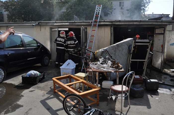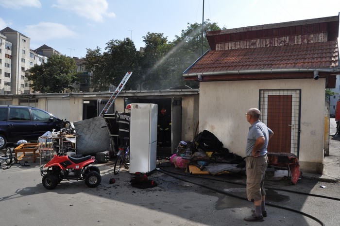 Două maşini de pompieri au ajuns la faţa locului, iar lucrătorii de la Inspectoratul pentru Situaţii de Urgenţă au decis evacuarea două garaje, în care erau depozitate tot felul de lucruri, de la biciclete sau ATV-uri până la cutii de carton şi bucăţi de mobilier.