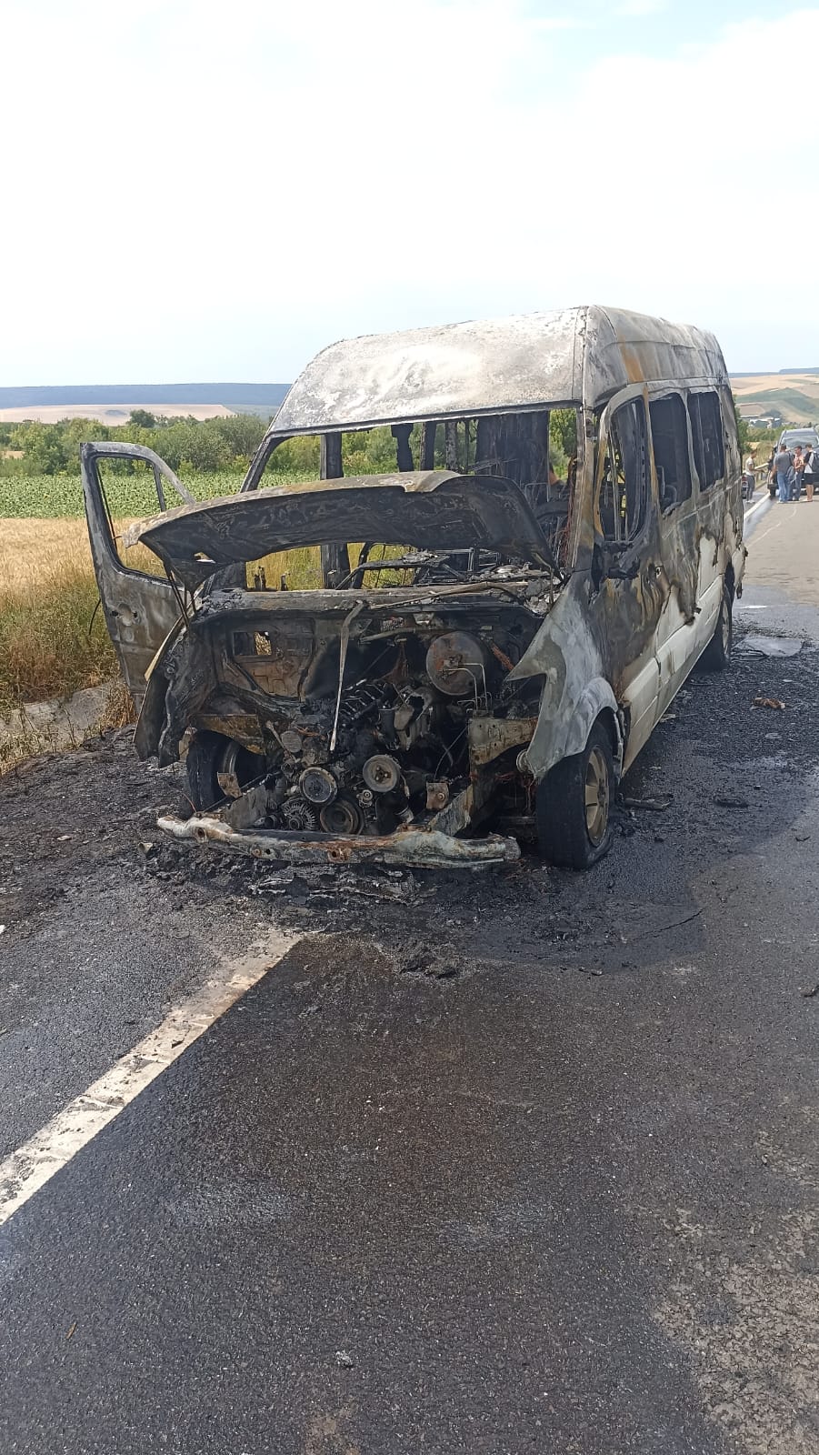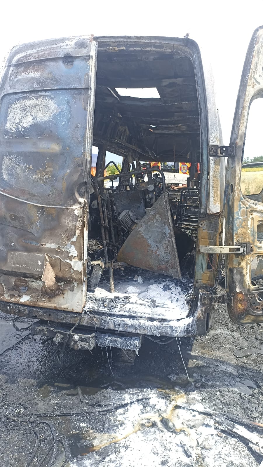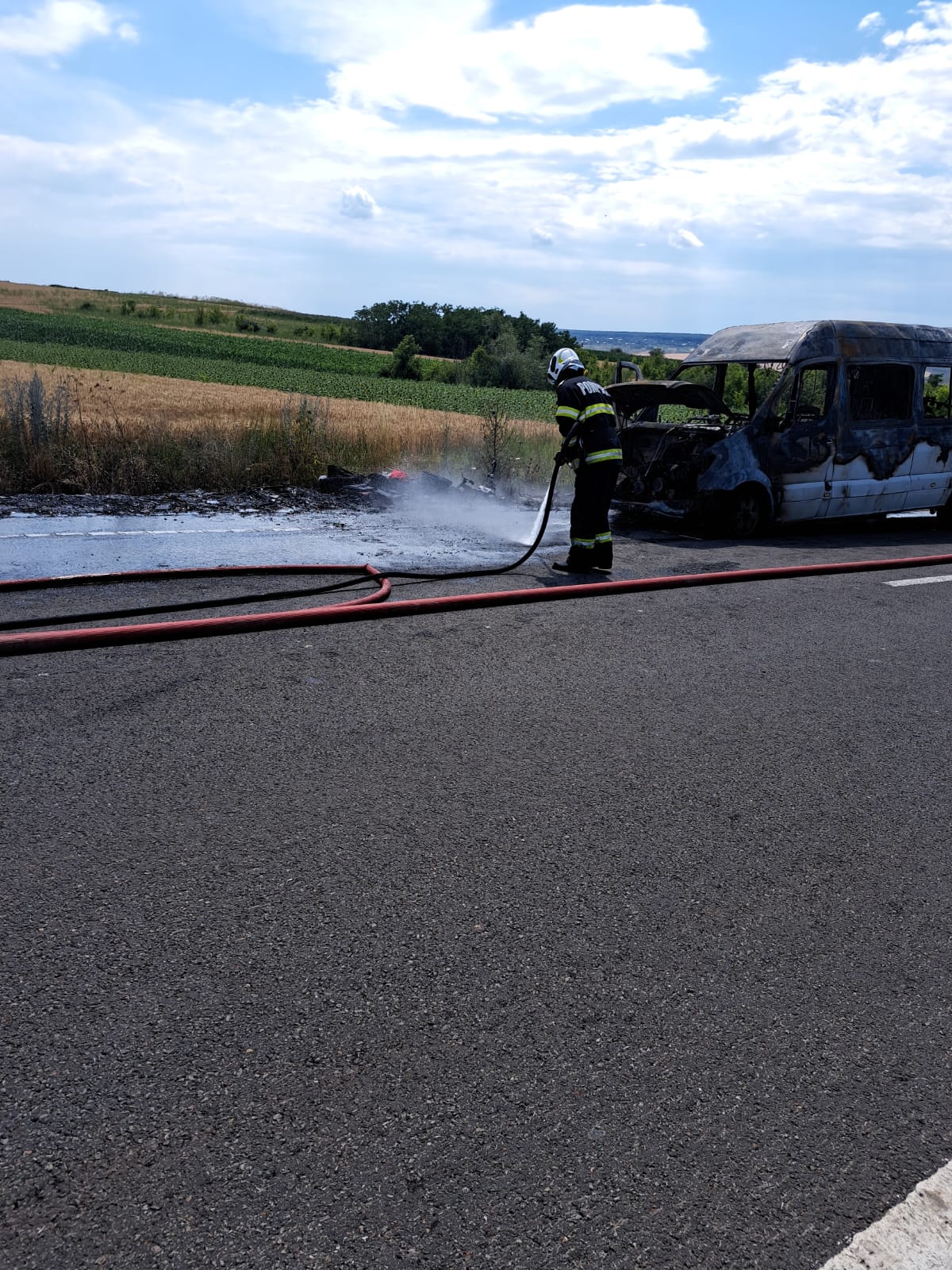 Au intervenit pompierii din cadrul Gărzii de Intervenție Trușești, cu două autospeciale de stingere cu apă. Aceștia au constatat faptul că microbuzul ardea în totalitate. Pompierii au acționat rapid și au stins flăcările înainte ca acestea să se extindă la un lan de grâu.