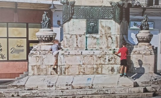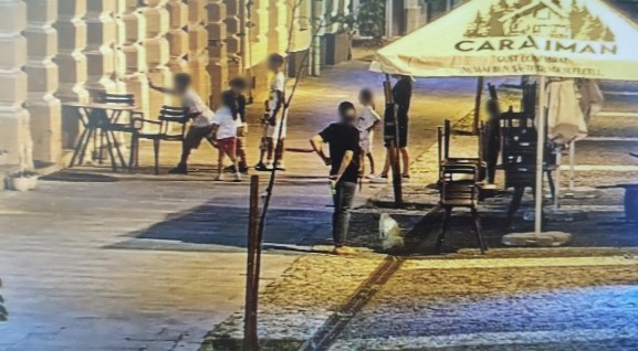 Bătaie de joc în Centrul Istoric! Mai mulți copii lăsați de părinți de izbeliște au fost filmați având comportamente necivilizate. Unii se urcau cu picioarele pe fântâna arteziană din Centrul Istoric; alții (cu vârste cuprinse între 5-10 ani) desprindeau bucăți de granit de pe grupul statuar și le aruncau în pereții/geamurile/ușile spațiilor comerciale din Centrul Istoric.