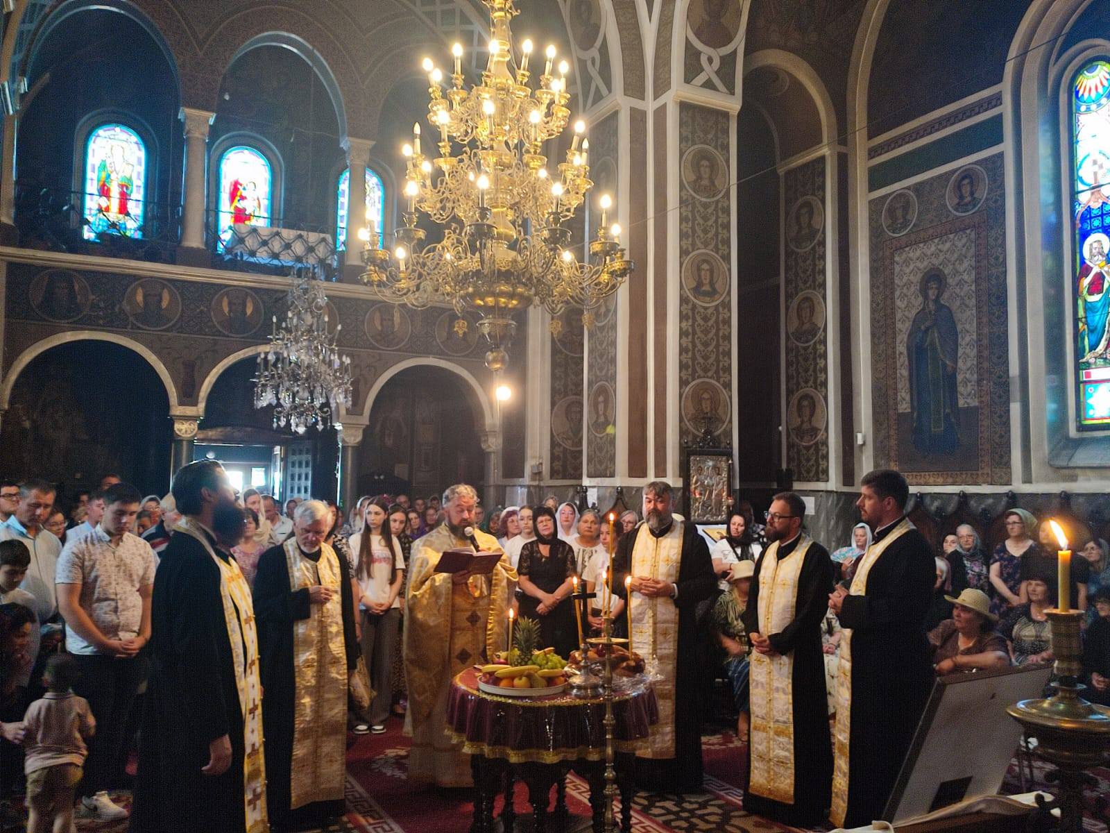 Slujba de Te Deum a fost săvârșită de un sobor de preoți condus de părintele protopop Ionuț Ștefan Apetrei. Potrivit slovacrestina.com, în cuvântul său, părintele protopop a subliniat continuitatea slujirii și a mulțumit Părintelui Gheorghe Șoptică pentru întreaga activitate desfășurată: