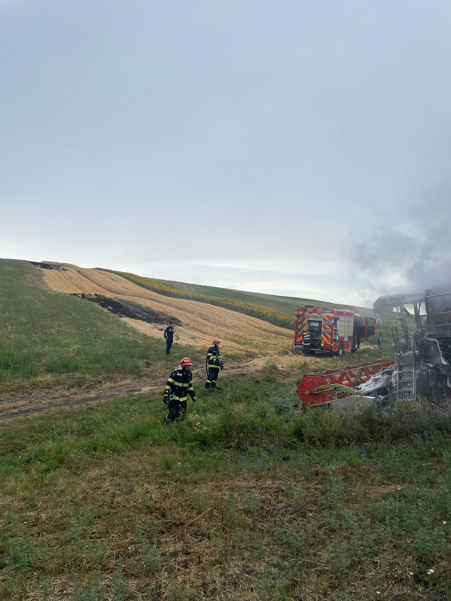 „Aceștia au constatat faptul că incendiul se manifesta la compartimentul motor și a afectat o parte din habitaclu, precum și vegetația uscată din jur, pe o suprafață de aproximativ 80 de metri pătrați. Pompierii au acționat rapid astfel încât flăcările să nu se extindă la întregul utilaj și la lanul de grâu. Conducătorul utilajului a suferit arsuri minore și a fost dus la spital de un martor al evenimentului, înainte de sosirea forțelor de intervenție la fața locului”, susțin reprezentanții Inspectoratului pentru Situații de Urgență Botoșani.
