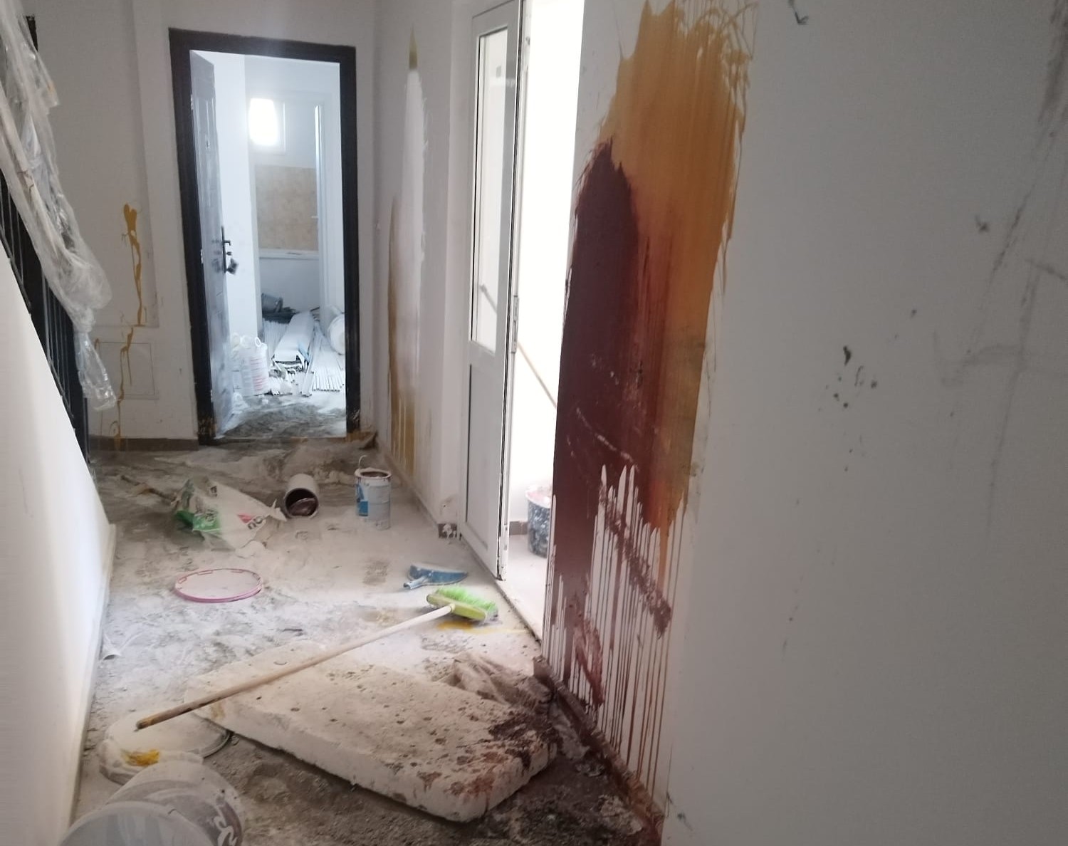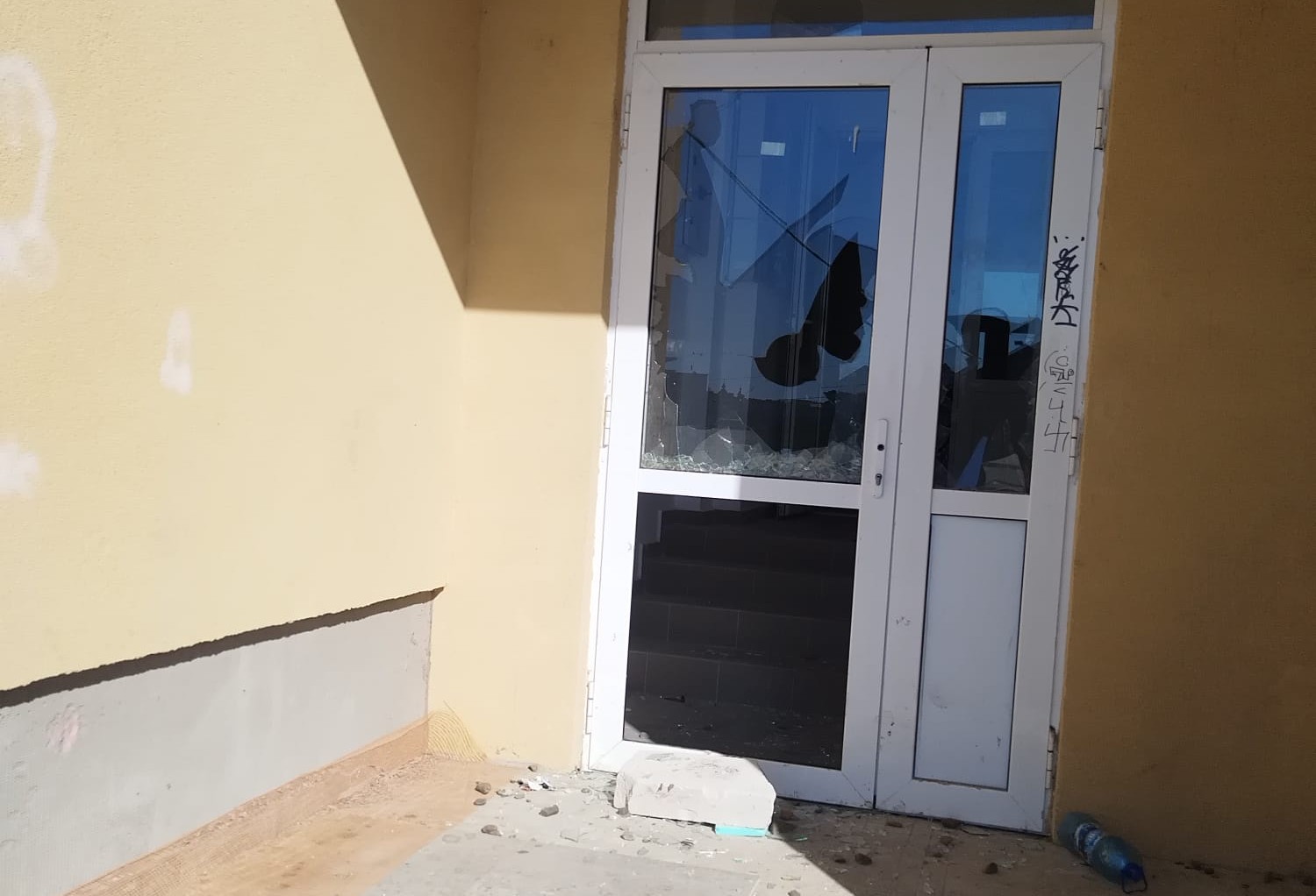 Indivizii au intrat în scările de bloc şi au distrus uşile, geamurile, dar şi pereţii apartamentelor care încă nu au fost date în folosinţă.