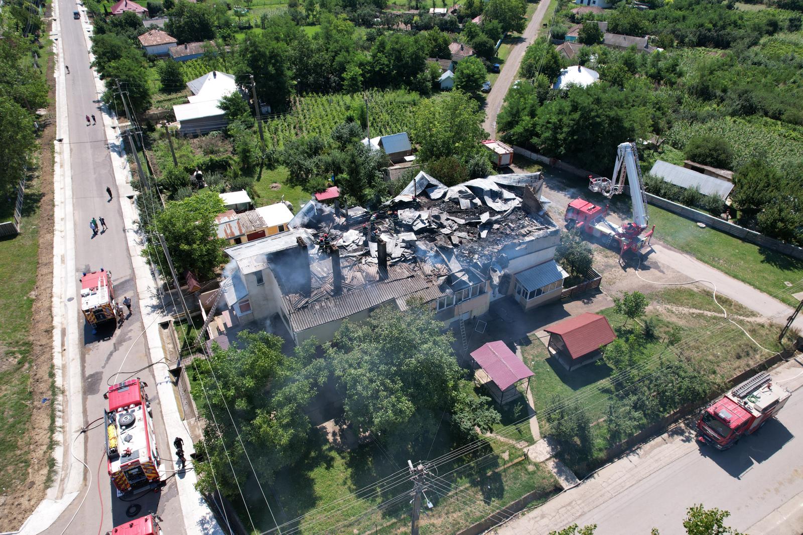 Aceștia au constatat faptul că ardea acoperișul clădirii, pe o suprafață de aproximativ 500 de metri pătrați, cu flacără și dejări mari de fum. Oamenii care se aflau în cladire, în momentul producerii evenimentului, erau ieșiți din interior. Este vorba de șapte persoane, cinci care locuiau în apartamentele de la etajul construcției, dar și două care lucrau la parter.
