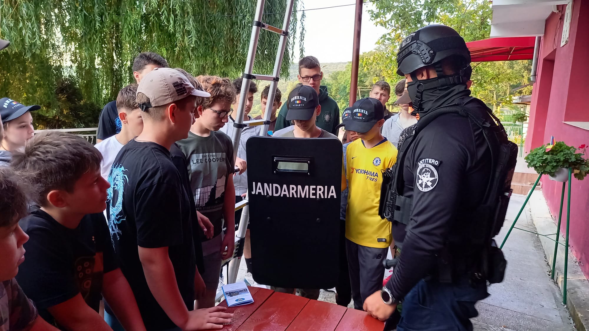 Și de această dată, jandarmii au fost cei care le-au dat deșteptarea și i-au condus rapid pe terenul de sport. Cei prezenți au efectuat un program de inviorare sub coordonarea jandarmilor, după care activitatea a continuat cu o prezentare a istoriei, competențelor legale și misiunilor Jandarmeriei Române, a mijloacelor din dotare, dar și a modalităților de prevenire a faptelor antisociale și urmărilor legale ale săvârșirii unor fapte de acest gen.