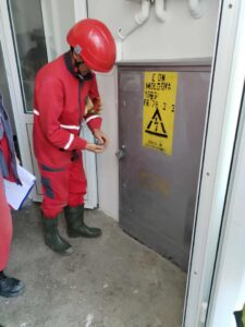 De asemenea, a intervenit și un echipaj de electricitate Delgaz Grid pentru a verifica tabloul.