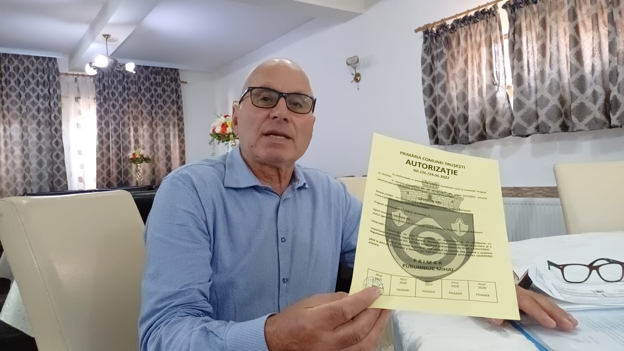 „Eu ție își vând o bucată de teren. Și tu intri tot pe la mine prin curte dacă ai intrare prin față? El are acces prin drumul județean, are poartă prin față, e restaurant Mariana. Firmă nu are, are șapte mașini pe care le parchează în fața primăriei și l-am atenționat verbal să își caute loc de parcare, blochează și trotuare”, ne-a declarat primarul din Trușești.