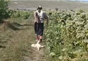 Femeia din Albești a fost filmată după ce a legat un câine și l-a târât pe drum. Nici măcar rugămințile unui consătean nu au convins-o pe bunică să lase animalul în pace.