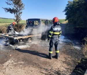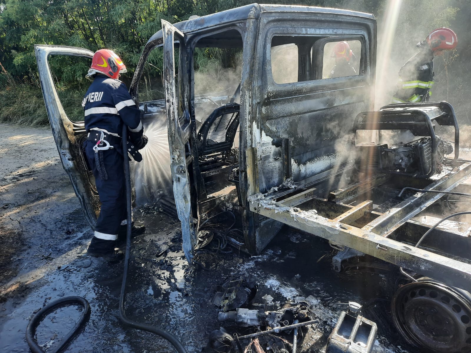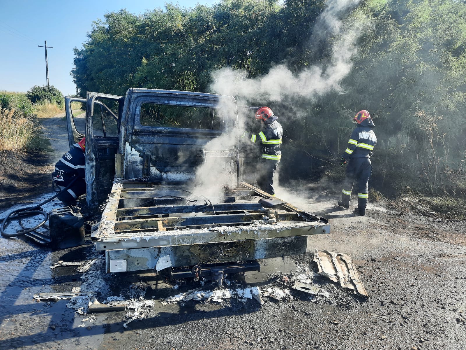 Aceștia au constatat faptul că autoutilitara ardea în totalitate și au acționat rapid astfel încât flăcările să nu se extindă la o lizieră de salcâmi și culturi agricole.