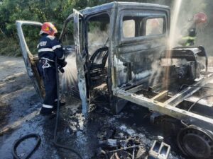 O autoutilitară care se deplasa pe un drum din localitatea Strahotin, comuna Dângeni, a luat foc, miercuri după-amiază. Conducătorul auto a oprit autovehiculul imediat ce a observat flăcările, a coborât și a sunat după ajutor, la 112
