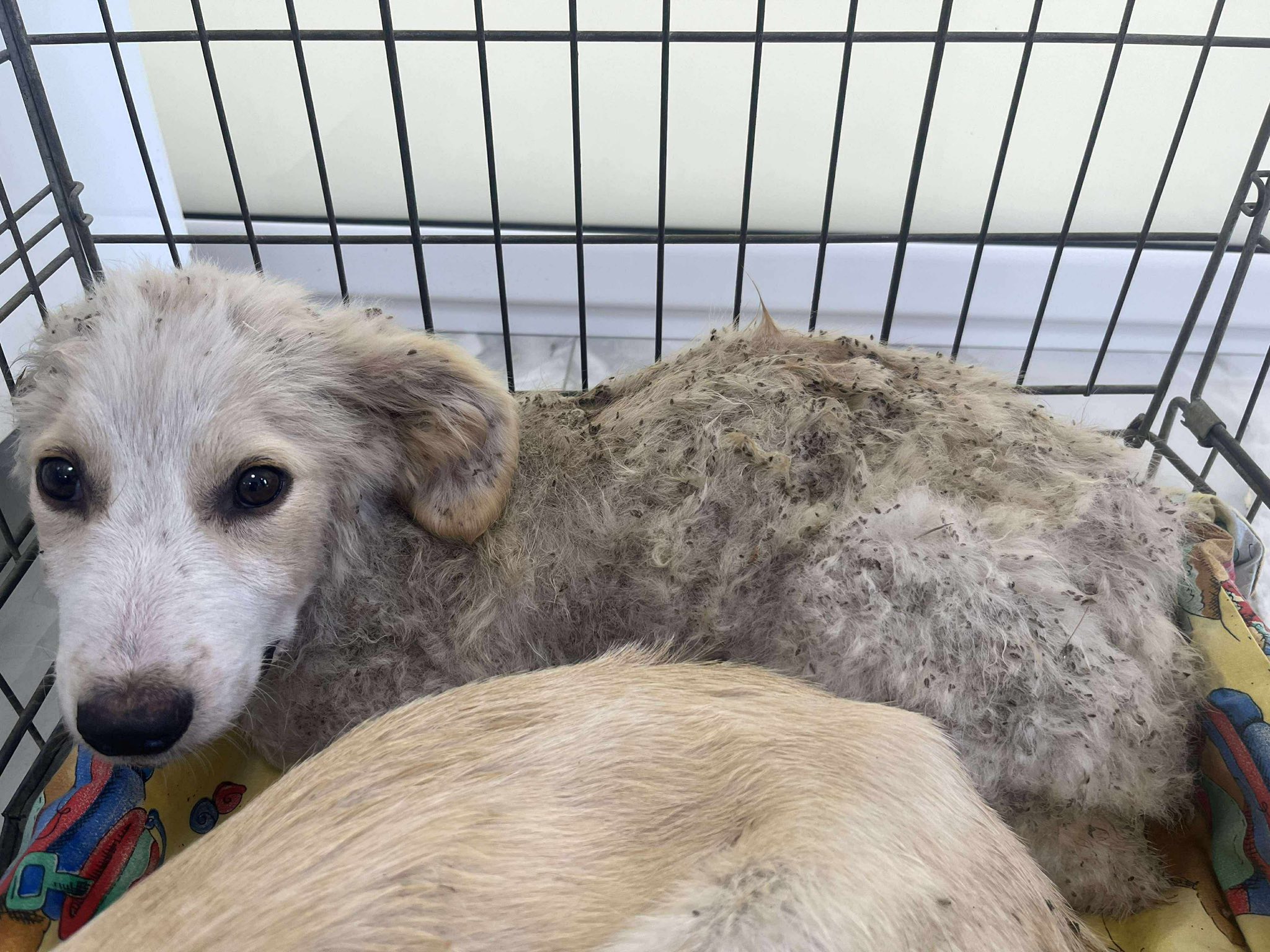 Cățelul salvat din mâinile unei bătrâne din Botoșani are urme de înțepături de furcă. Fratele său a fost și el luat din curtea femeii. Amândoi au ajuns pe mâinile medicilor veterinari de la Triovet.