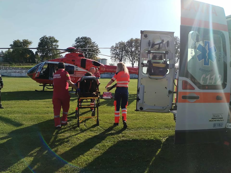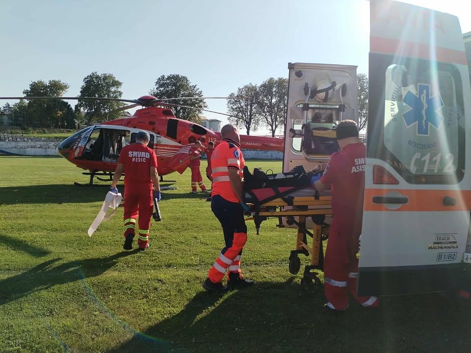 Elicopterul SMURD a fost chemat urgent, vineri, în județul Botoșani pentru a prelua un bărbat de 51 de ani aflat în stare gravă. Este vorba despre un bărbat din localitatea Baranca, care a fost dus în stare gravă la Centrul de Primiri Urgențe din cadrul Spitalului Municipal Dorohoi.