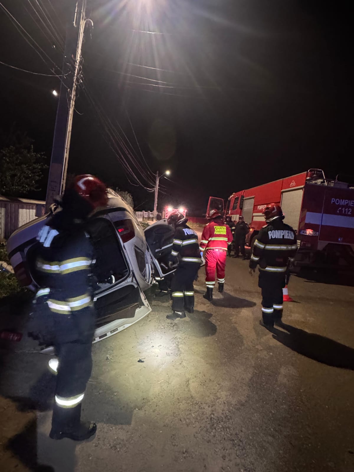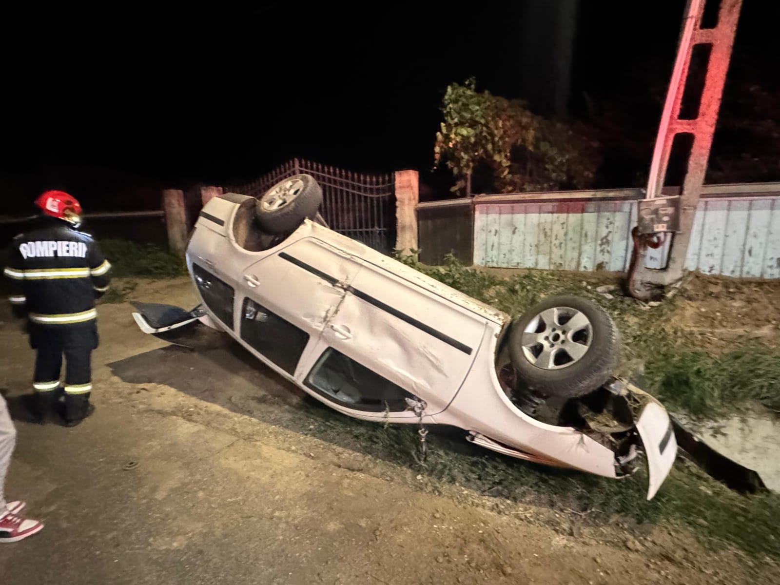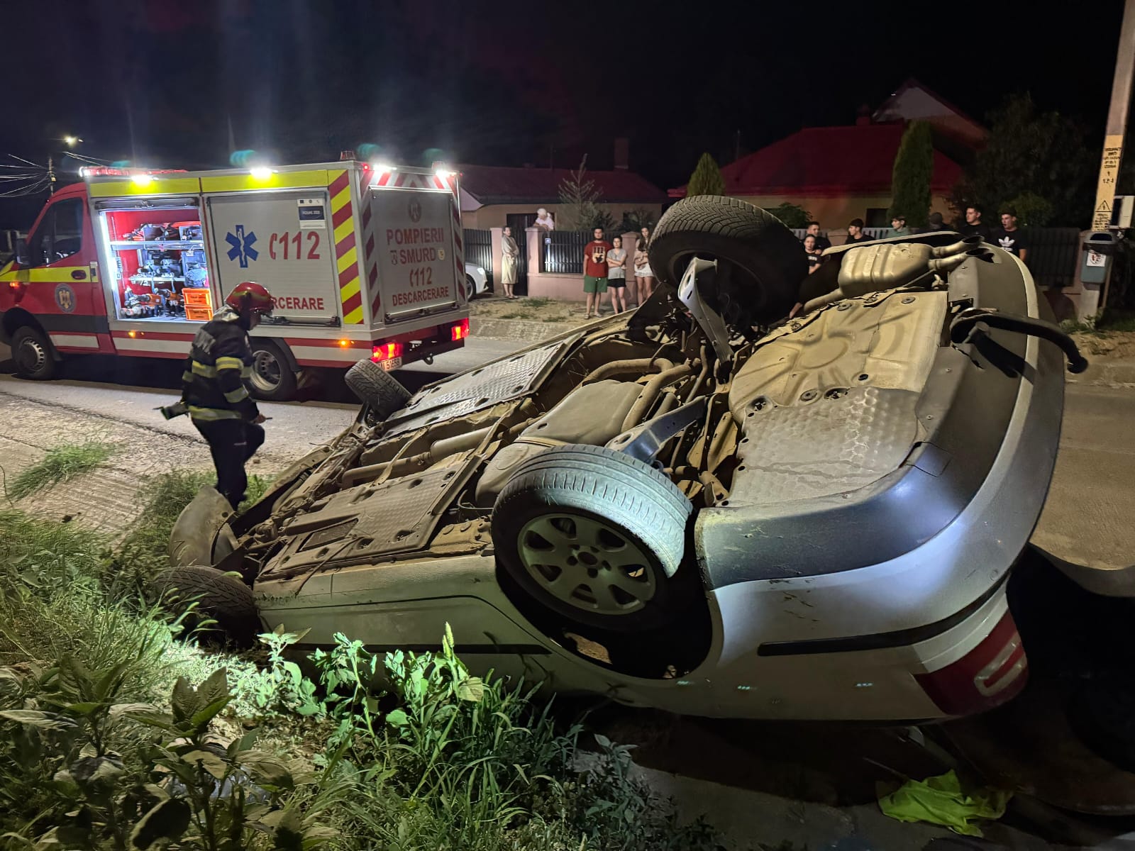 Echipajele au găsit autoturismul răsturnat pe capotă, în șanț, însă, din fericire, nu au existat persoane încarcerate sau rănite.