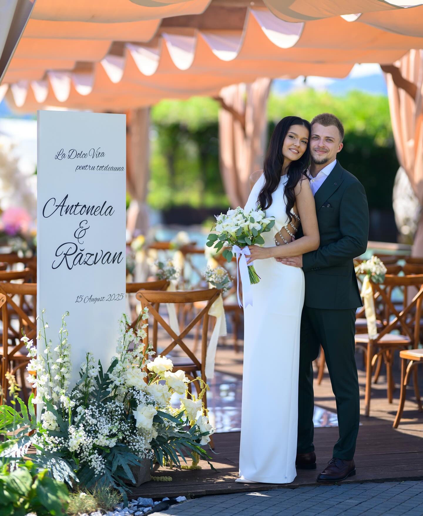„N-am fi crezut vreodată că o simplă ieșire la film va fi începutul unei povești care avea să ne schimbe destinele. Printre rânduri de scaune, în liniștea sălii și umbrele de pe ecran, privirile ni s-au întâlnit. A fost doar o clipă, poate o întâmplare, sau poate timpul și-a ales cu grijă momentul în care să ne aducă împreună. Acolo, în întunericul cald al cinemaului, a început filmul nostru, o poveste simțită înainte de a fi rostită. De atunci, trăim în tonuri de roz, à la vie en rose, iar fiecare zi e un nou cadru din povestea noastră”, este mesajul tinerilor din invitația de nuntă.
