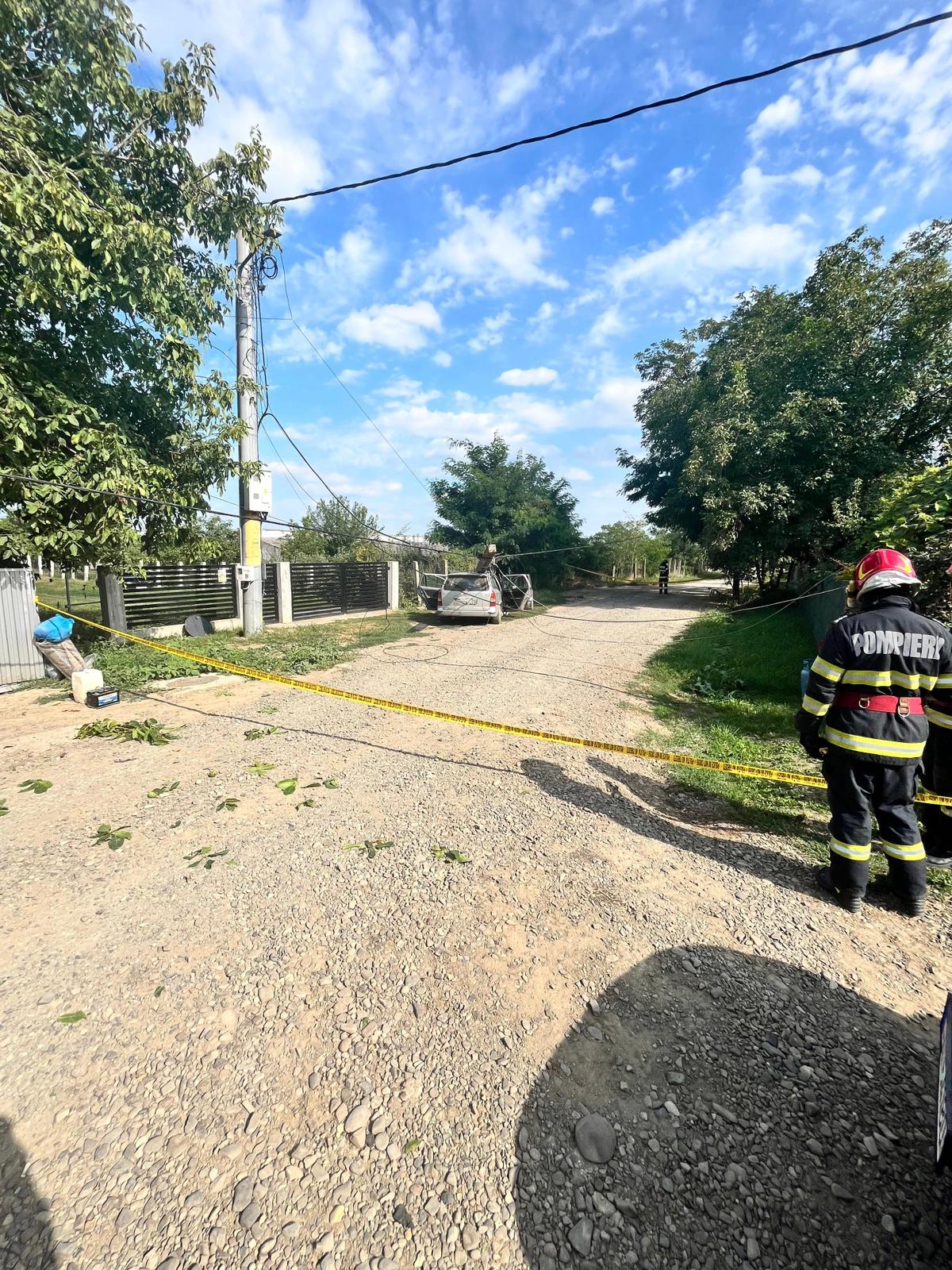 Pompierii au acționat pentru înlăturarea pericolului de incendiu, deconectând bornele bateriei autoturismului și au asigurat zona pâna la sosirea echipei de intervenție de la firma de distribuție a energiei electrice.