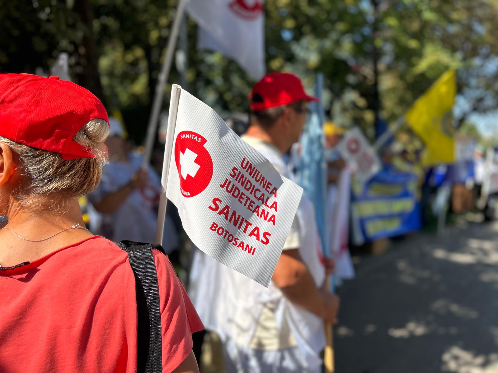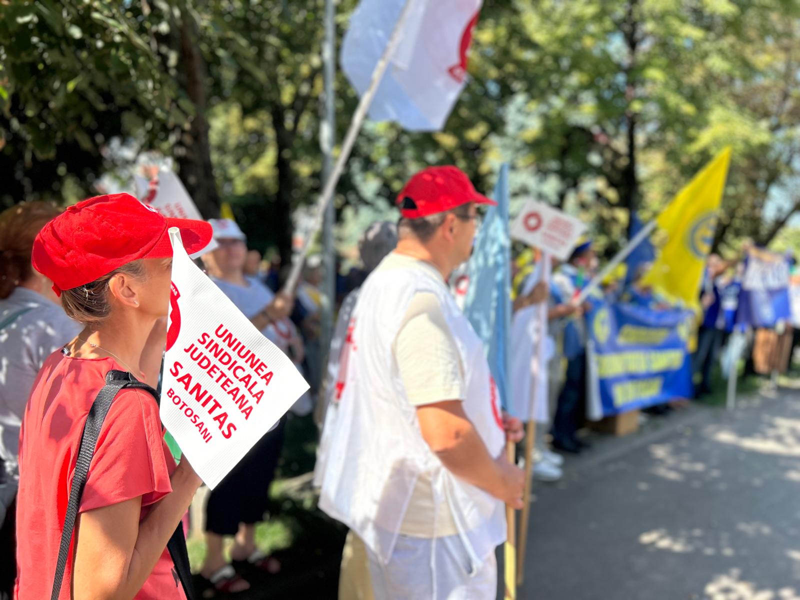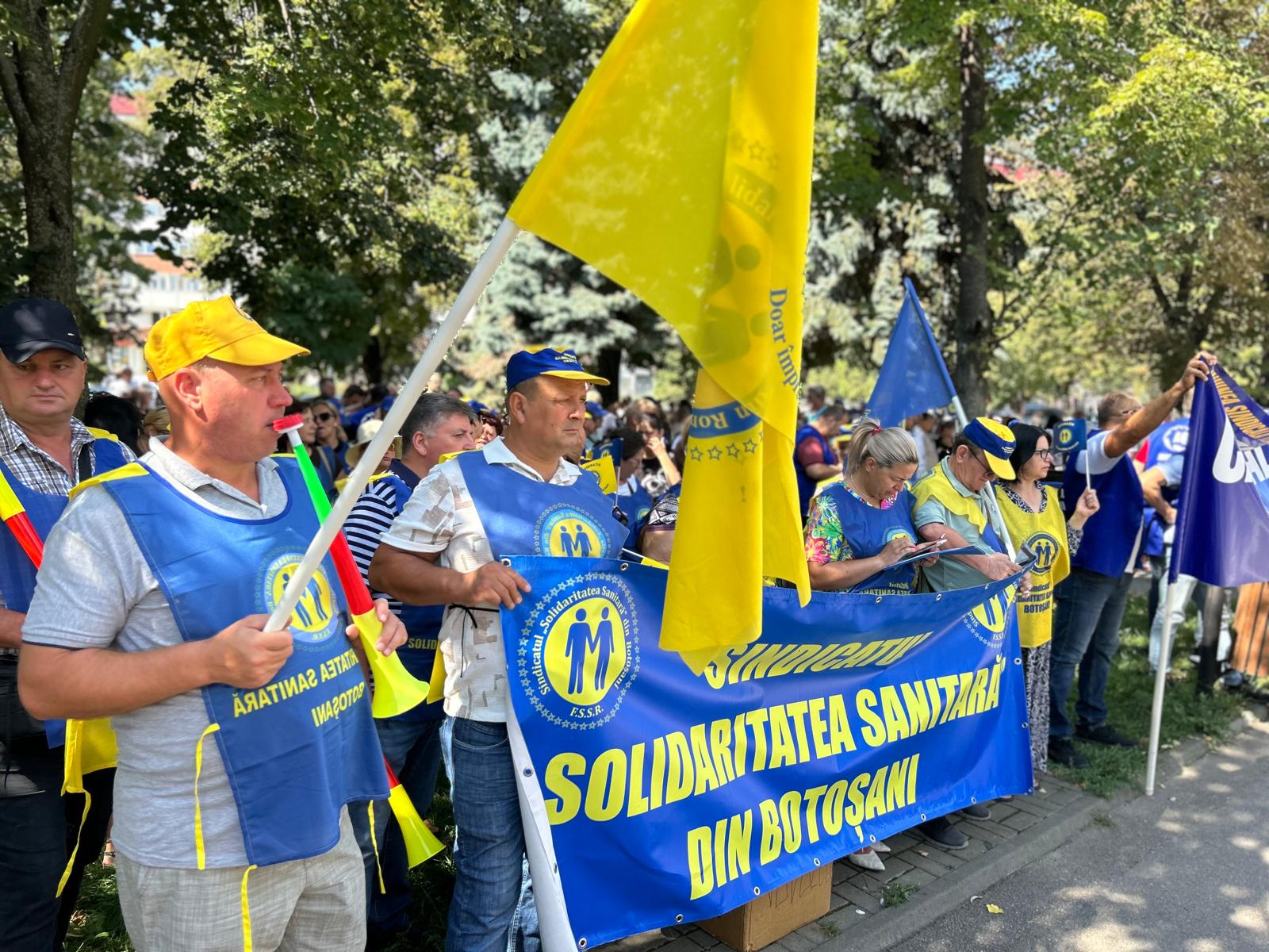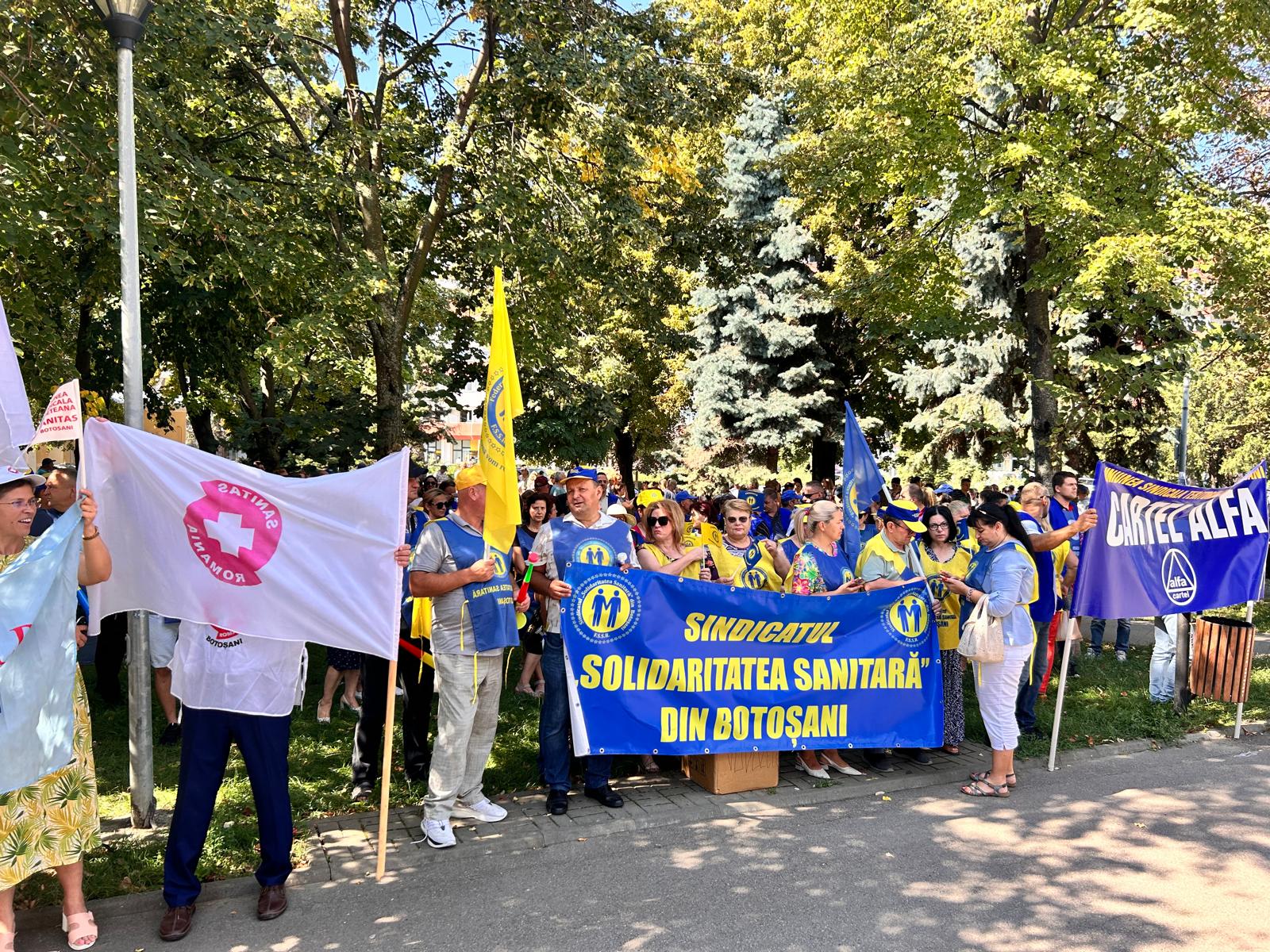 Un protest de amploare cu sute de sindicaliști a avut loc, miercuri, în municipiul Botoșani. Angajații statului au pichetat sediul temporar al Instituției Prefectului timp de două ore, în intervalul 11.00- 13.00, nemulțumiți de măsurile luate de Guvernul Bolojan.