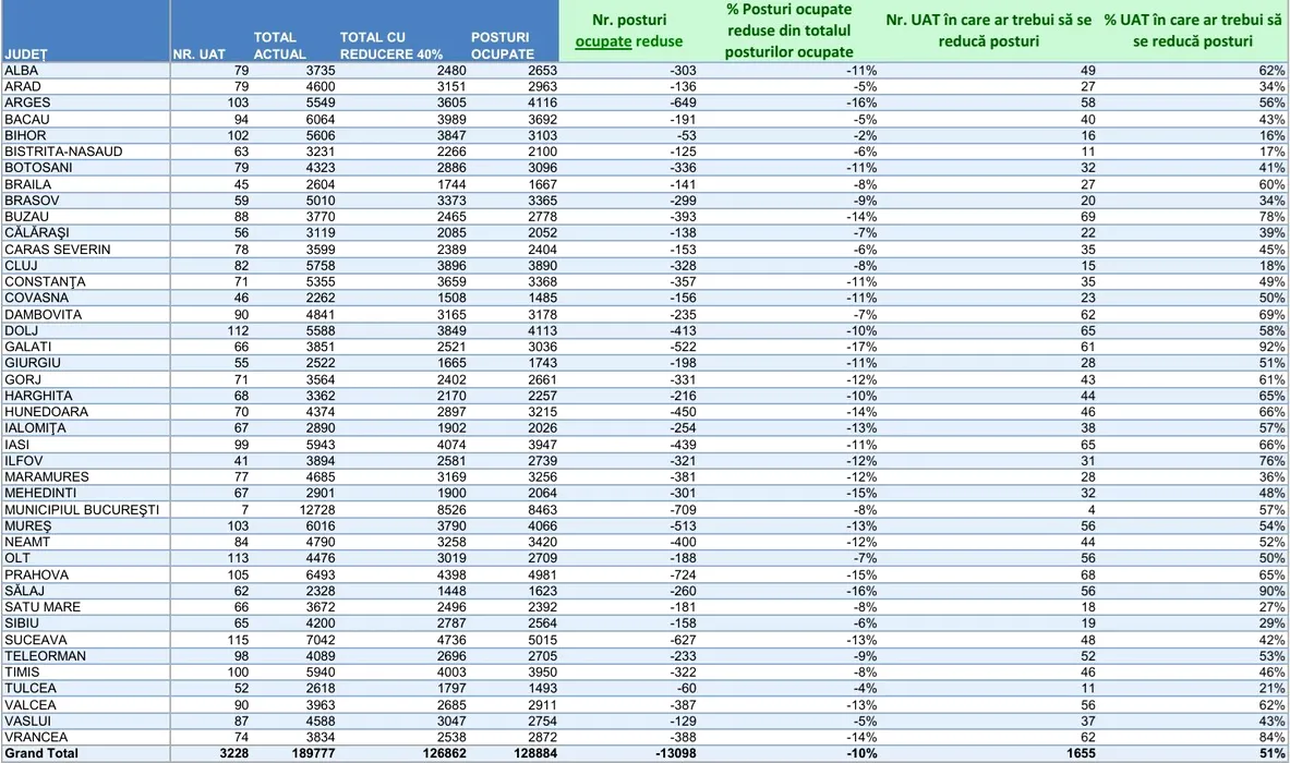 Un număr de 32 de primării din cele 78 existente în județ vor renunța la angajați.