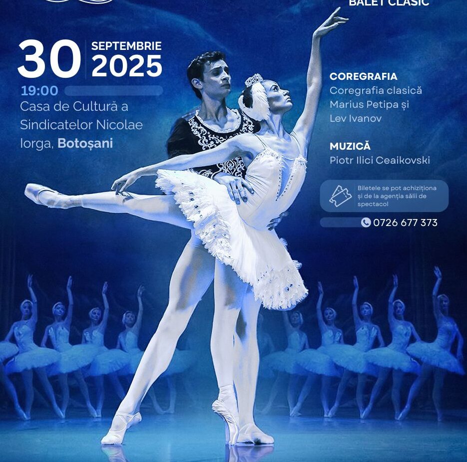 Pe 30 septembrie 2025, de la ora 19.00, la Casa de Cultură a Sindicatelor „Nicolae Iorga“, publicul botoșănean este invitat să se bucure de cel mai iubit balet al tuturor timpurilor: „Lacul Lebedelor“, prezentat în cadrul unui amplu turneu, de prestigioasa companie European Classical Ballet.