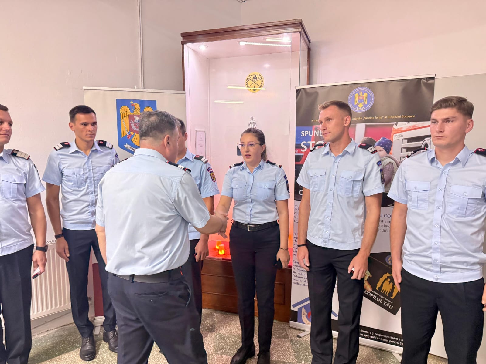 La ceas aniversar, șase pompieri din cadrul Inspectoratului pentru Situații de Urgență „Nicolae Iorga” al Județului Botoșani, care s-au evidenţiat prin modul exemplar de îndeplinire a atribuţiilor de serviciu, au fost înaintați în gradul militar următor, înaintea expirării stagiului minim.