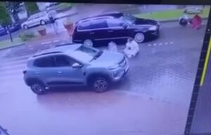 Impactul a fost surprins de o cameră de supraveghere din zonă și sunt greu de privit.