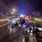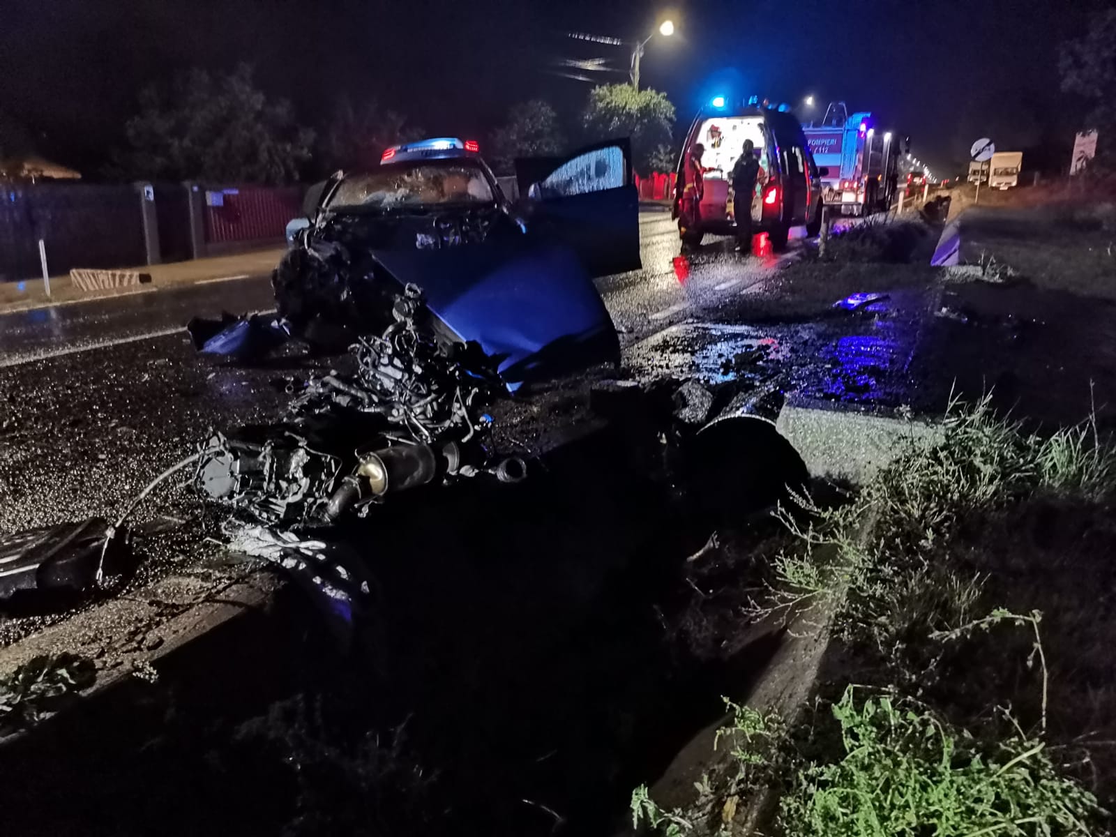 FOTO & VIDEO Accident, noaptea trecută, într-o localitate din Botoșani. Un tânăr a fost rănit după ce s-a izbit cu mașina într-un cap de pod