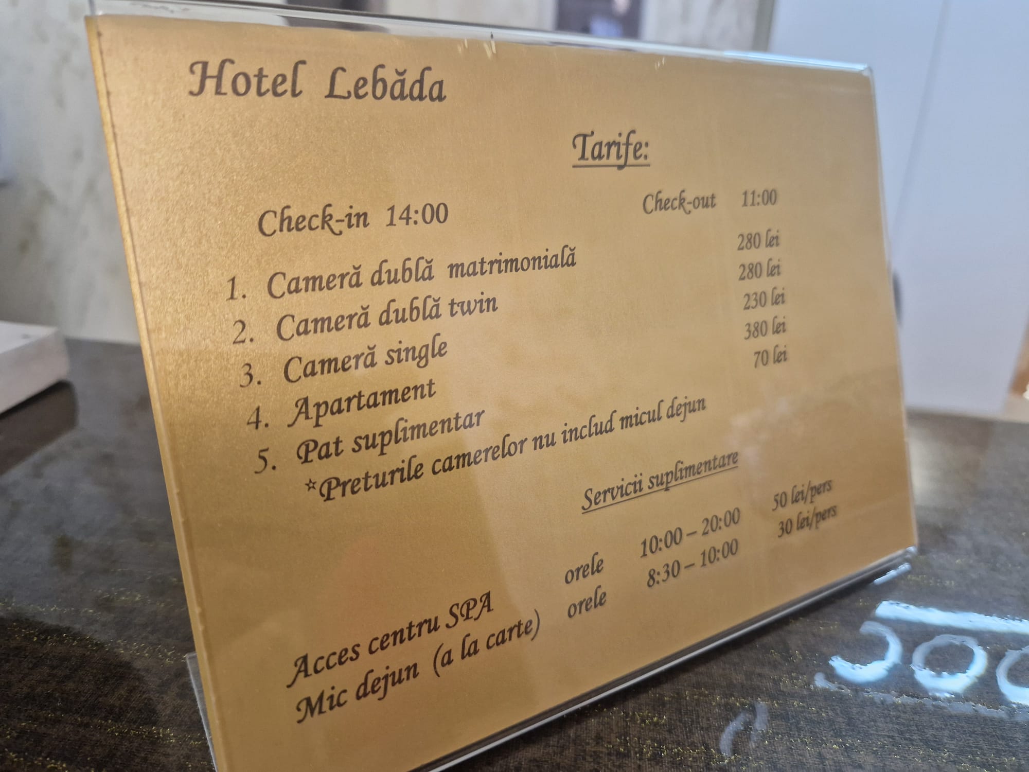 Micul dejun costă 30 lei/persoană, în timp ce accesul la piscina cu apă sărată și saune, doar pentru clienții hotelului, costă 50 de lei.