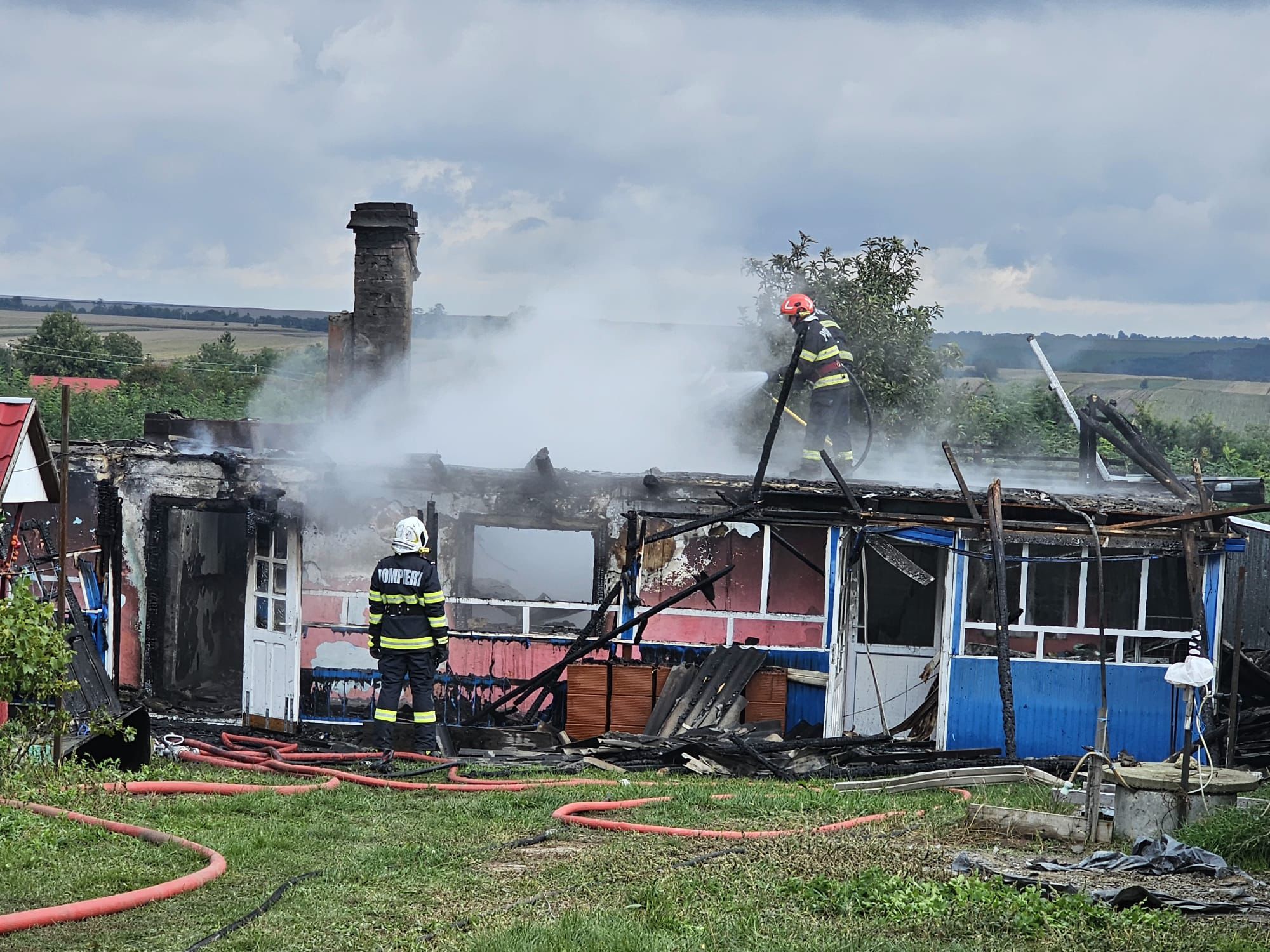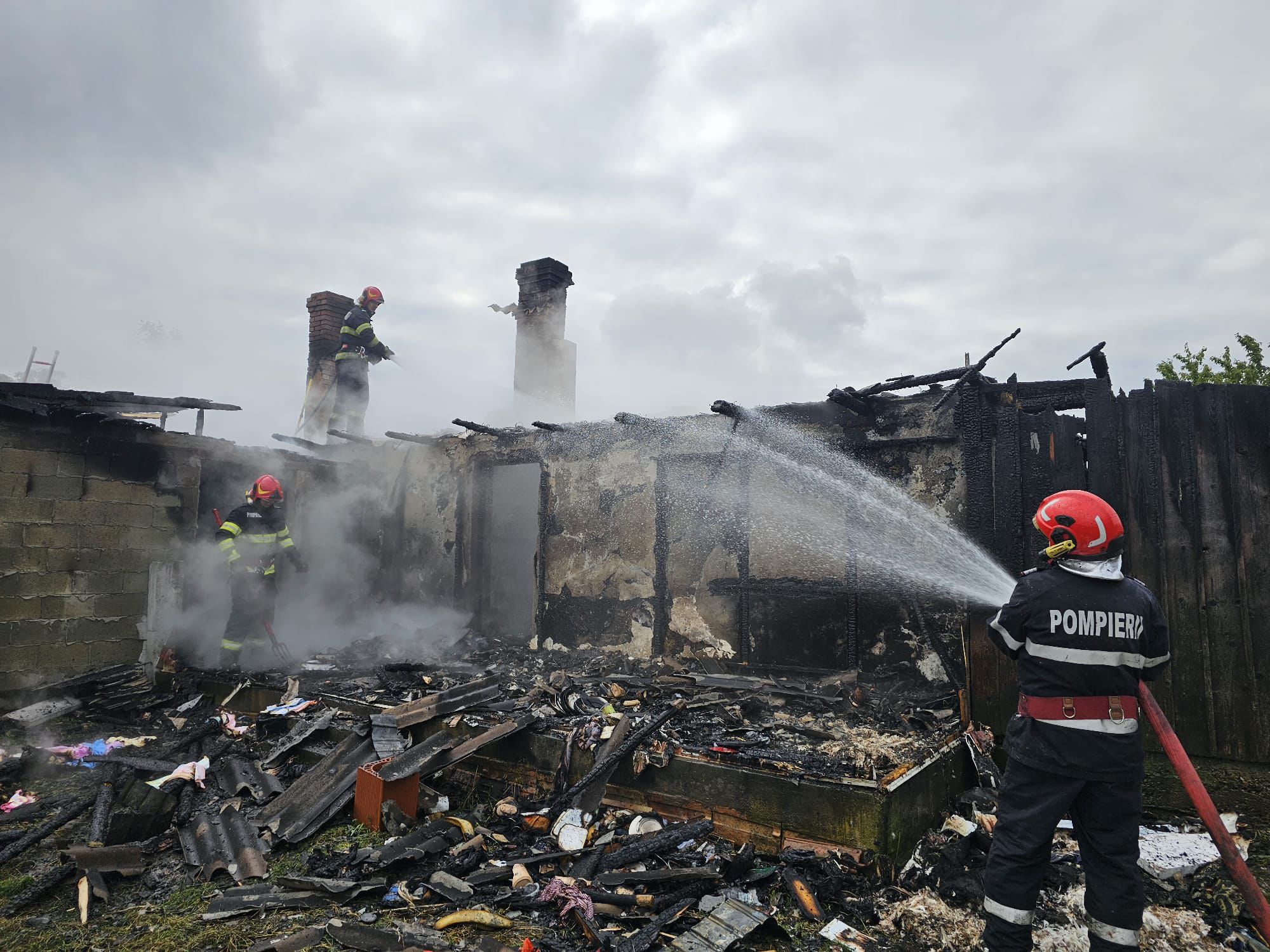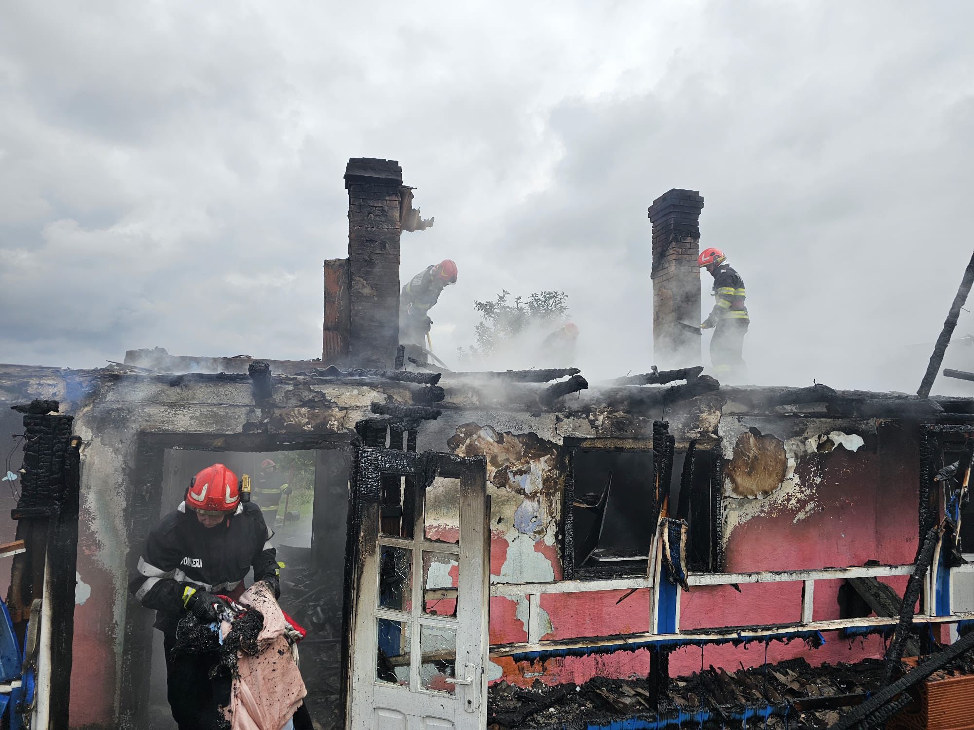„Ajunse la locul evenimentului, forțele de intervenție au constatat că este vorba de un incendiu generalizat la o casa de locuit pe o suprafață de aproximativ 70 de metri pătrați, fiind identificate două victime: un bărbat de 89 de ani, care a suferit arsuri ușoare și o femeie în vârstă de 97 de ani, găsită carbonizată în interiorul locuinței. Bărbatul a fost preluat de echipajul SMURD, fiind transportat la spital pentru îngrijiri medicale de specialitate. Cel mai probabil evenimentul a fost provocat de un recipient cu lichid inflamabil uitat în zona plitei care a aprins materialele combustibile din apropiere”, spun pompierii.