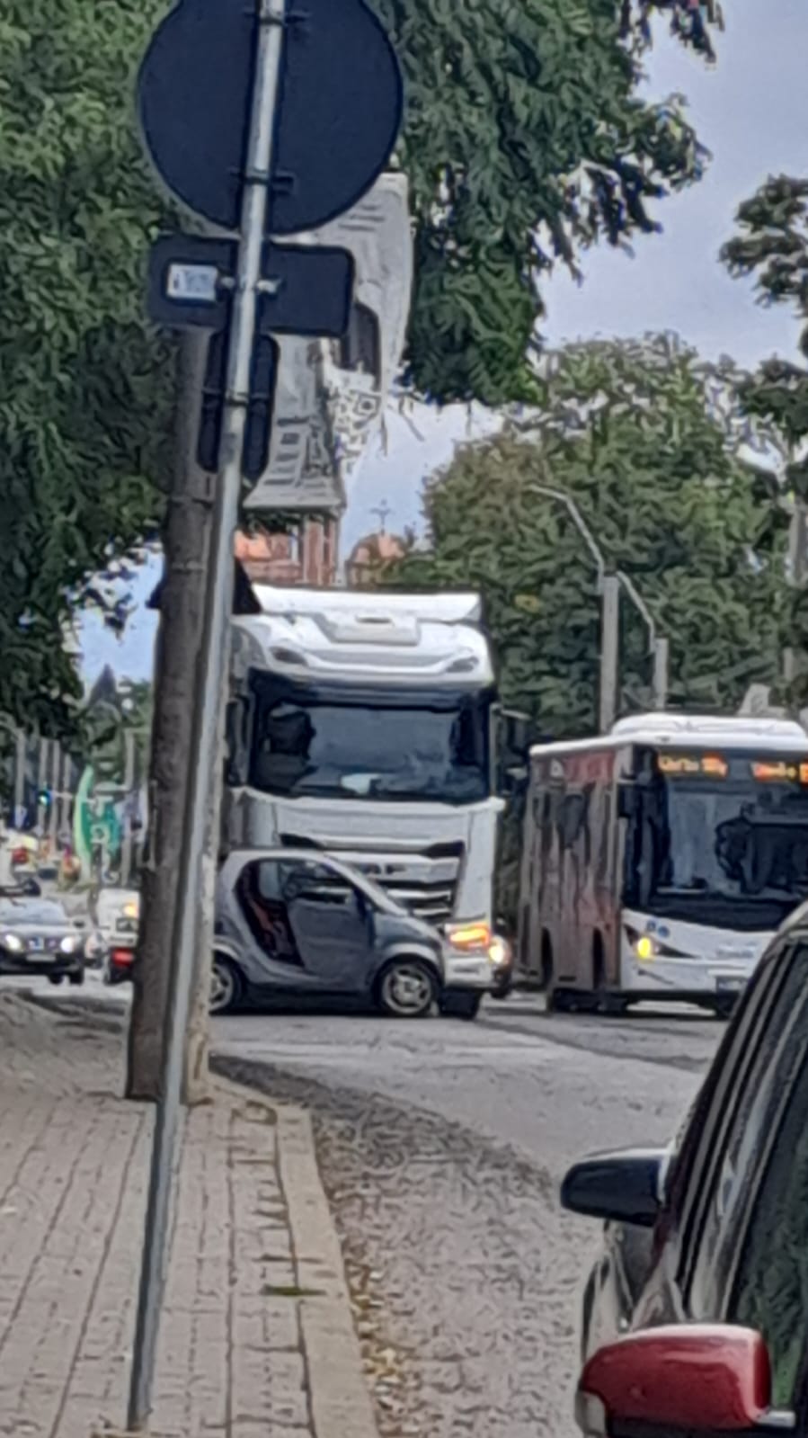 Noroc că șoferul camionului circula oricum prudent, în zonă fiind lucrări, și nu avea viteză, dar tot nu a reușit să evite impactul.