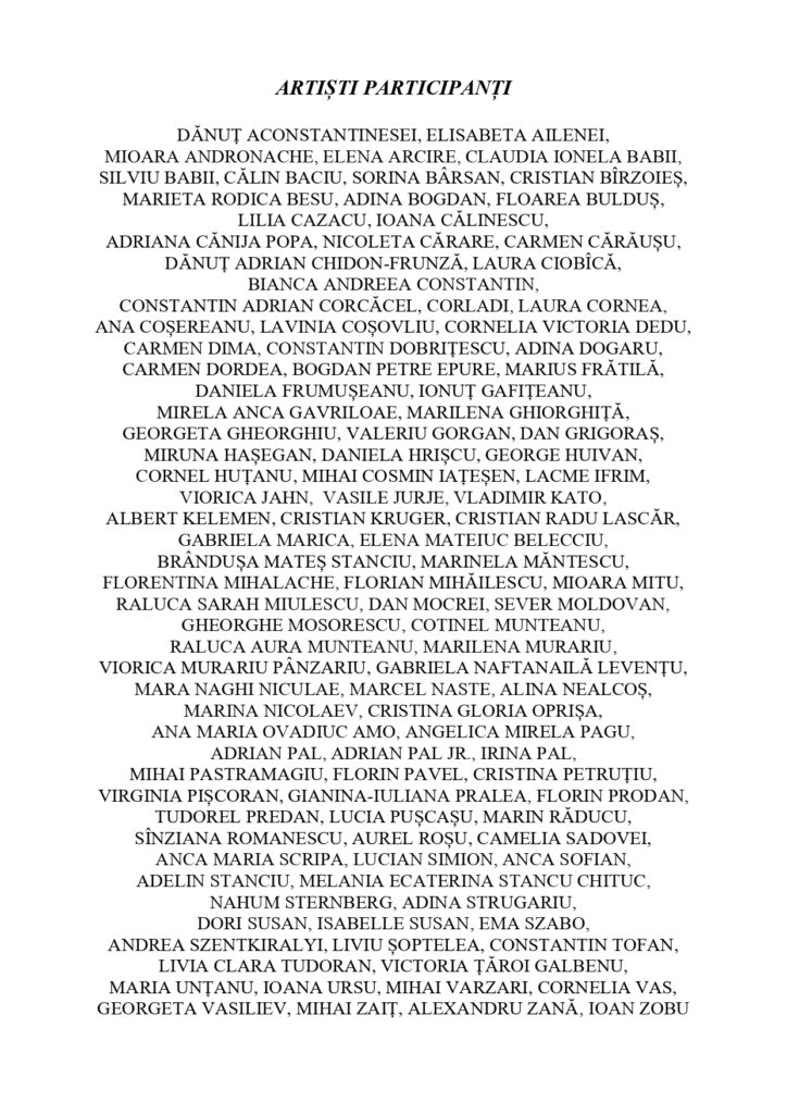 Expoziția, al cărei invitat de onoare este artistul român Constantin Tofan, vicepreședinte al Uniunii Artiștilor Plastici – Filiala Iași, reunește peste 100 de artiști plastici români contemporani, din diverse zone ale țării și din străinătate (Republica Moldova, Israel și SUA), aparținând unor școli și generații diferite.