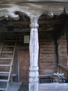 Piesa de rezistență este portalul de la intrare. Nu doar un simplu acces, acesta este un manifest al credinței și al talentului meșteșugăresc. Portalul este împodobit cu nu mai puțin de șaisprezece rozete – simboluri străvechi, adesea interpretate ca „roți solare”, ce protejează și binecuvântează lăcașul. Ușa, și ea decorată cu migală, completează ansamblul de o valoare artistică inestimabilă.