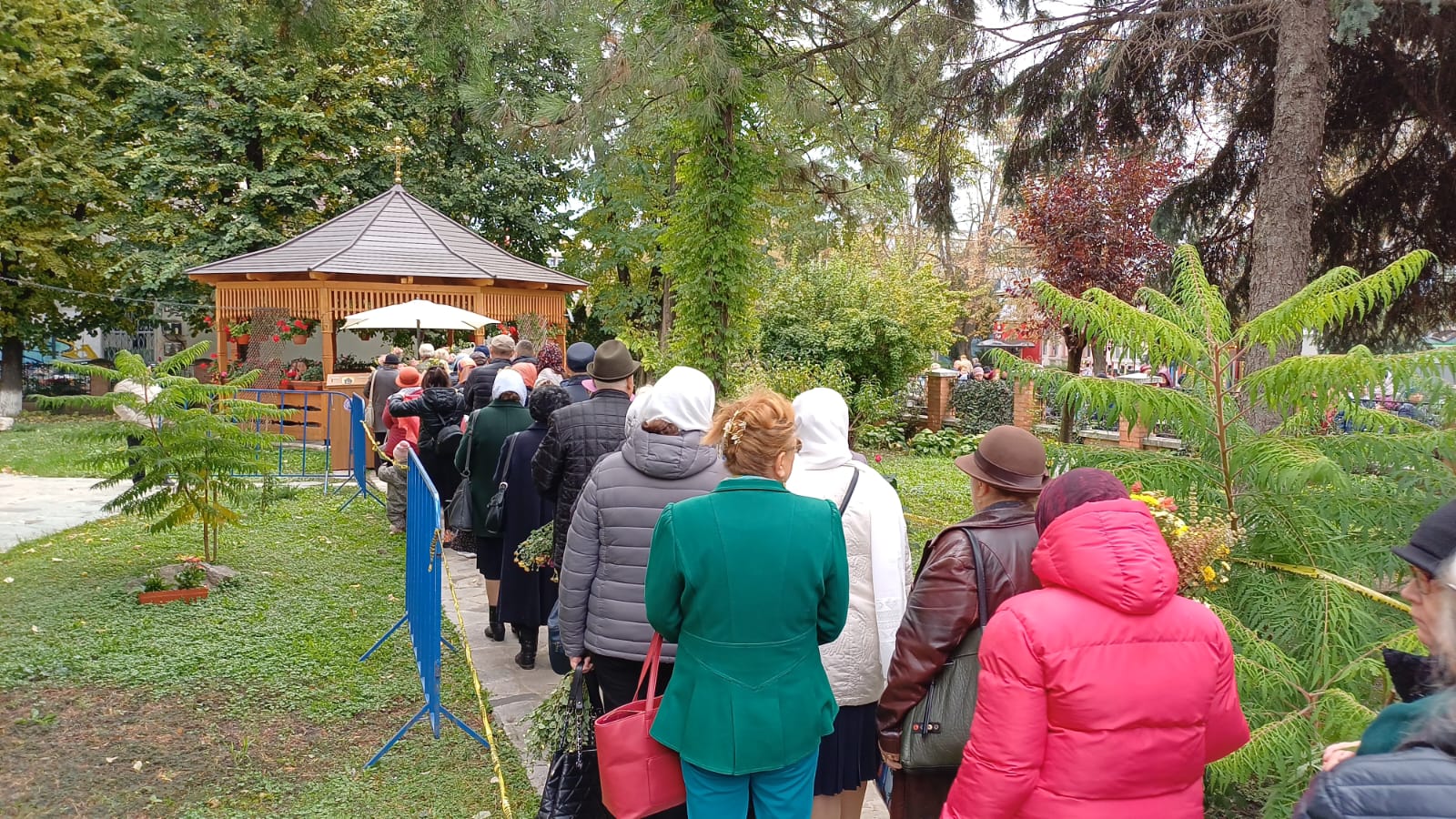 Așteptarea a fost una îndelungată. Coada pelerinilor, formată pentru a ajunge la veșmintele Sfintei, se întindea de la lăcașul de cult până mult după clădirea Cinema Unirea, demonstrând evlavia celor prezenți. Oamenii au așteptat cu răbdare rândul pentru a se ruga și a se închina, într-o atmosferă de reculegere și pioșenie.