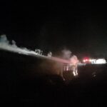 La a doua hală, aflată la o distanță de circa 200 mp de prima clădire incendiată, cu destinații multiple, arde cu flacără, iar forțele de intervenție lucrează pentru localizare și lichidare.